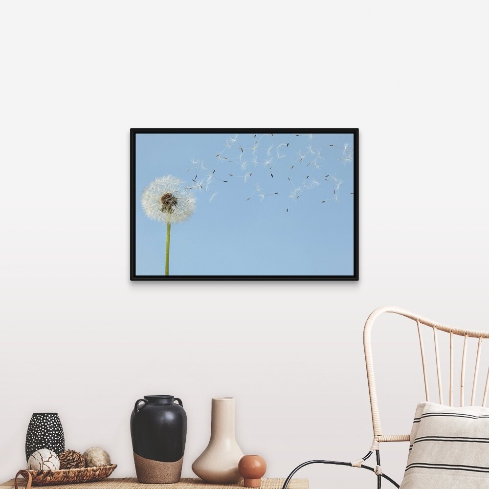 "Dandelion with seeds flying away" Black Float Frame Canvas Art