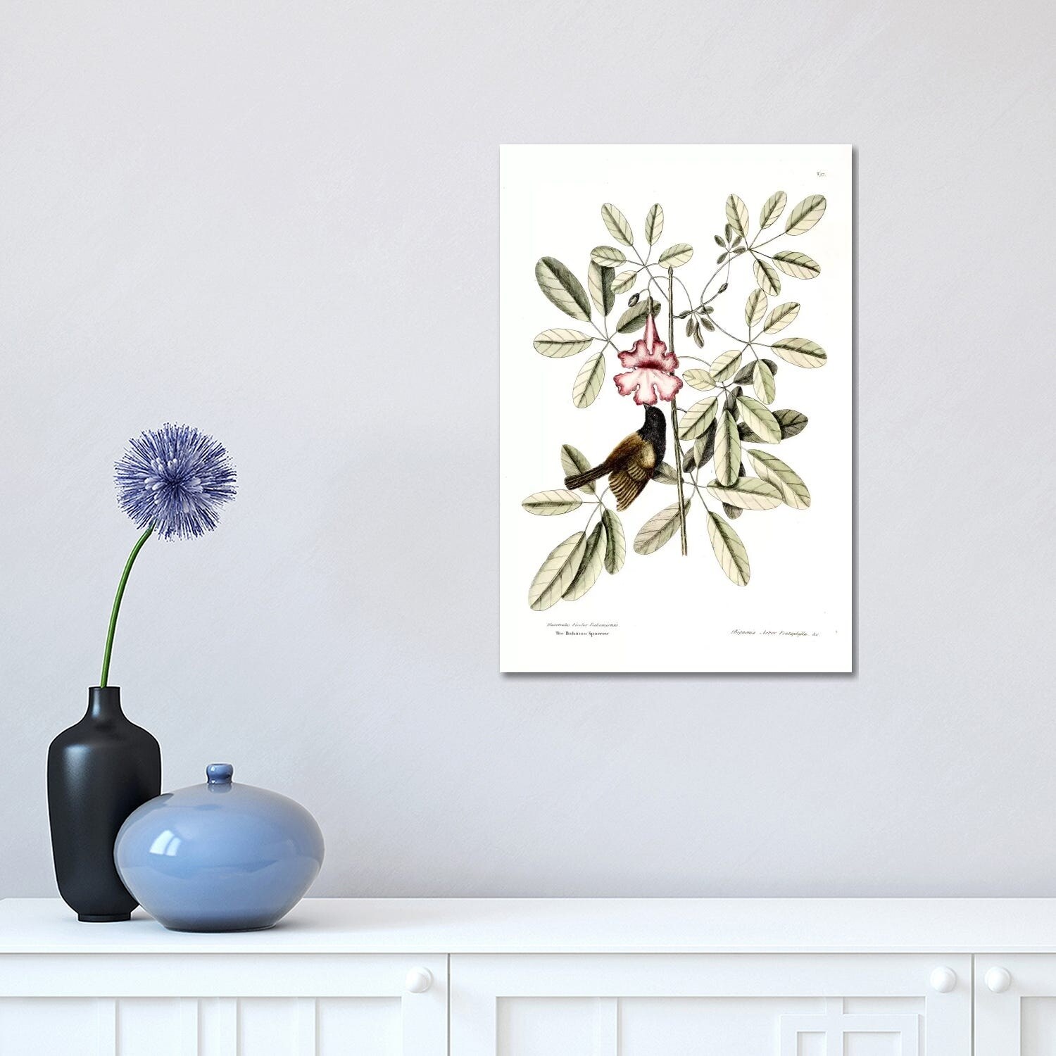 iCanvas "Bahama Sparrow & Bignonia Pentaphylla (Pink Trumpet Tree)" by Mark Catesby Canvas Print