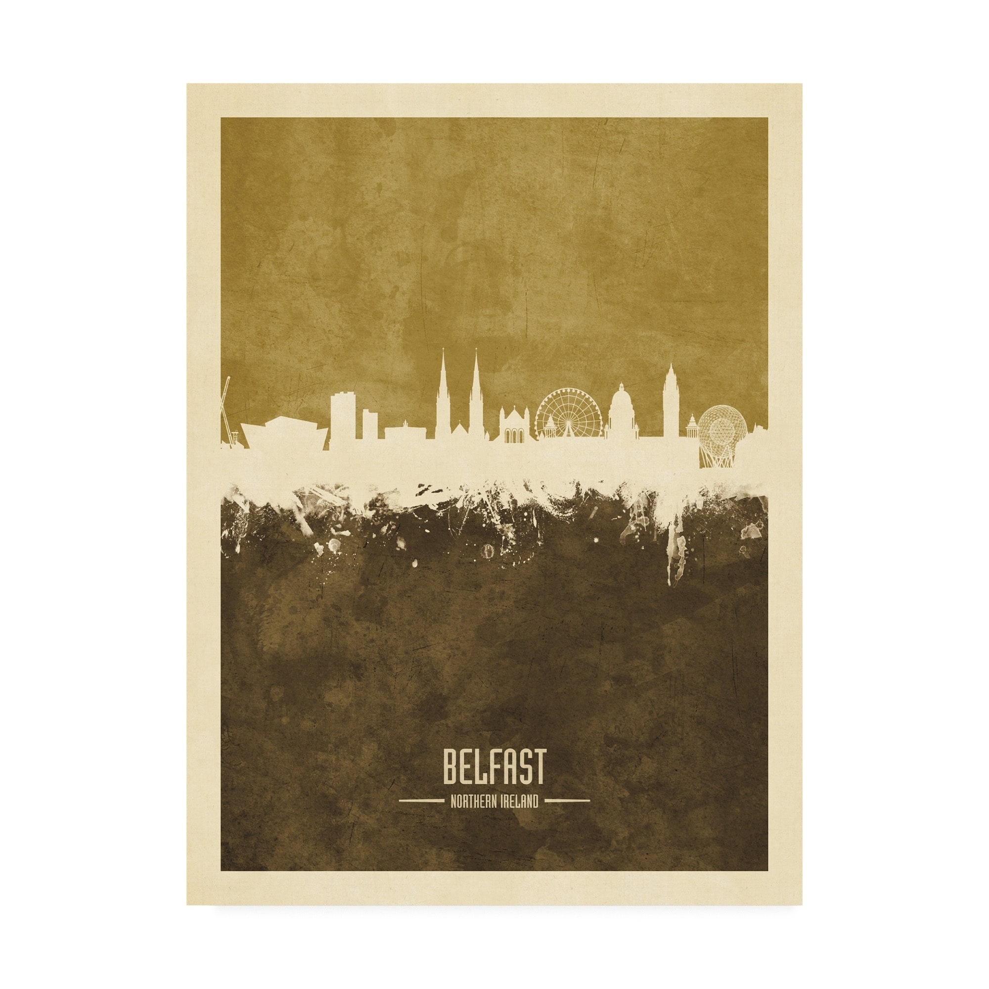 Michael Tompsett 'Belfast Northern Ireland Skyline Brown' Canvas Art