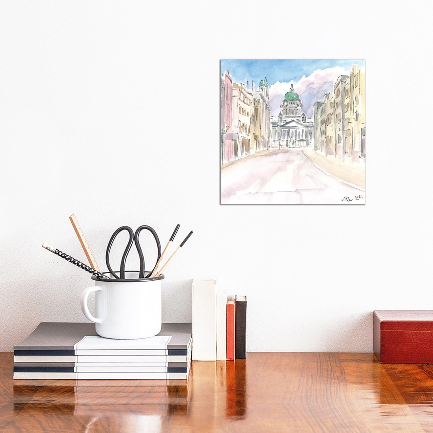 iCanvas "Belfast Watercolour Skyline" by Natalie Ryan Canvas Print