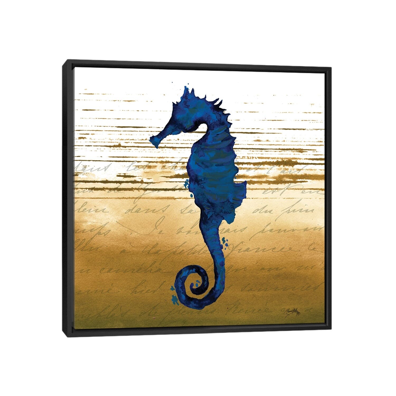 Designart "Sea Horse Crystal Blue" Modern & Contemporary Premium Framed Canvas Wall Art
