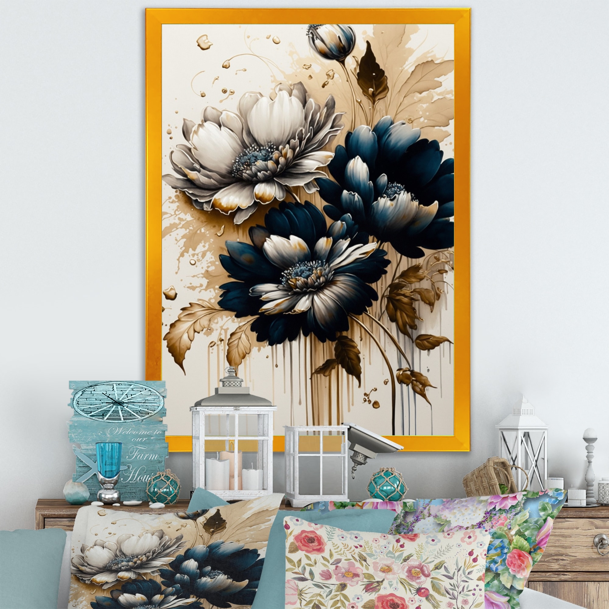 Designart "Blue And Gold Dahlia Bunch I" Floral & Botanical Framed Canvas Art Print