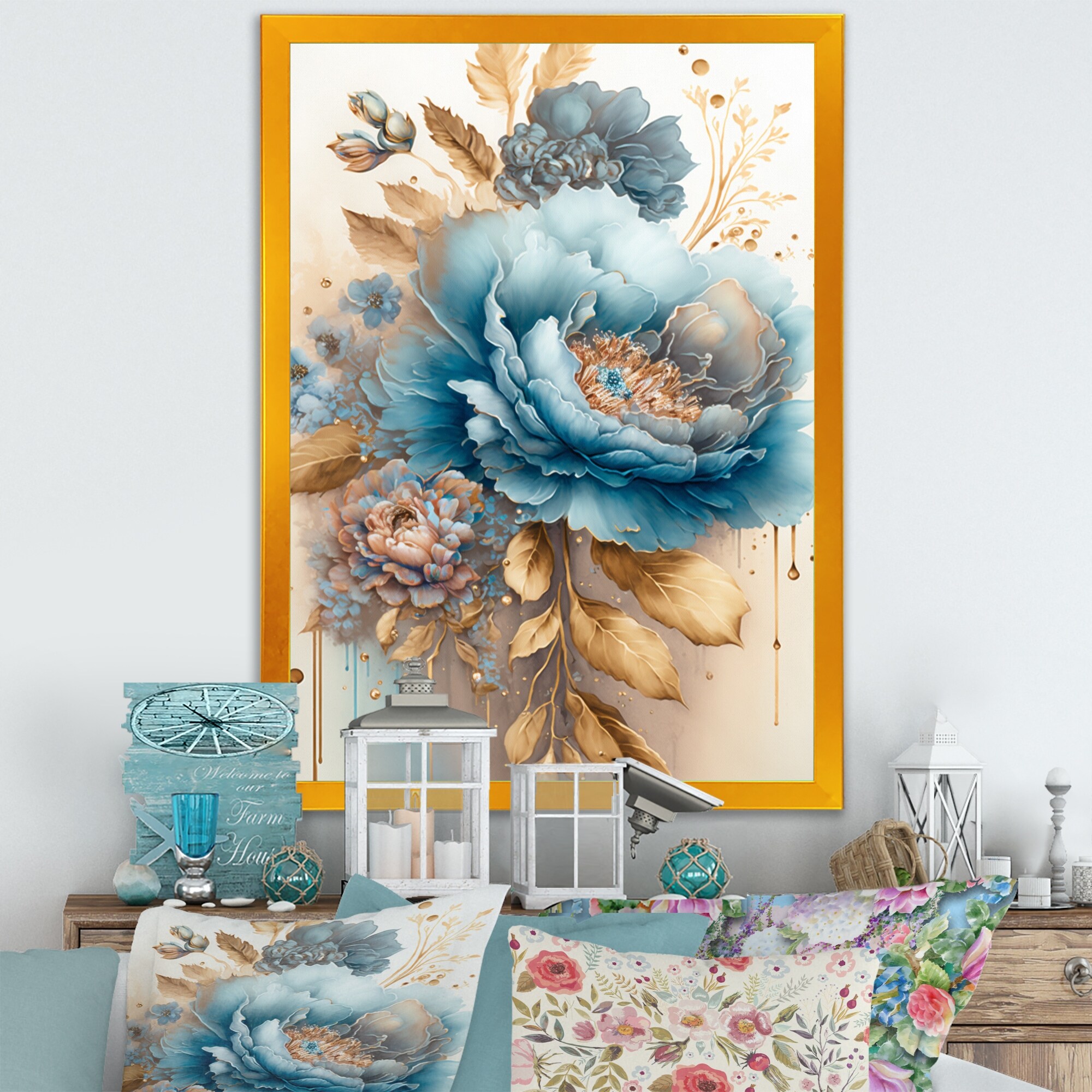 Designart "Blue And Gold Mixed Floral Bouquet II" Floral & Botanical Framed Art Print