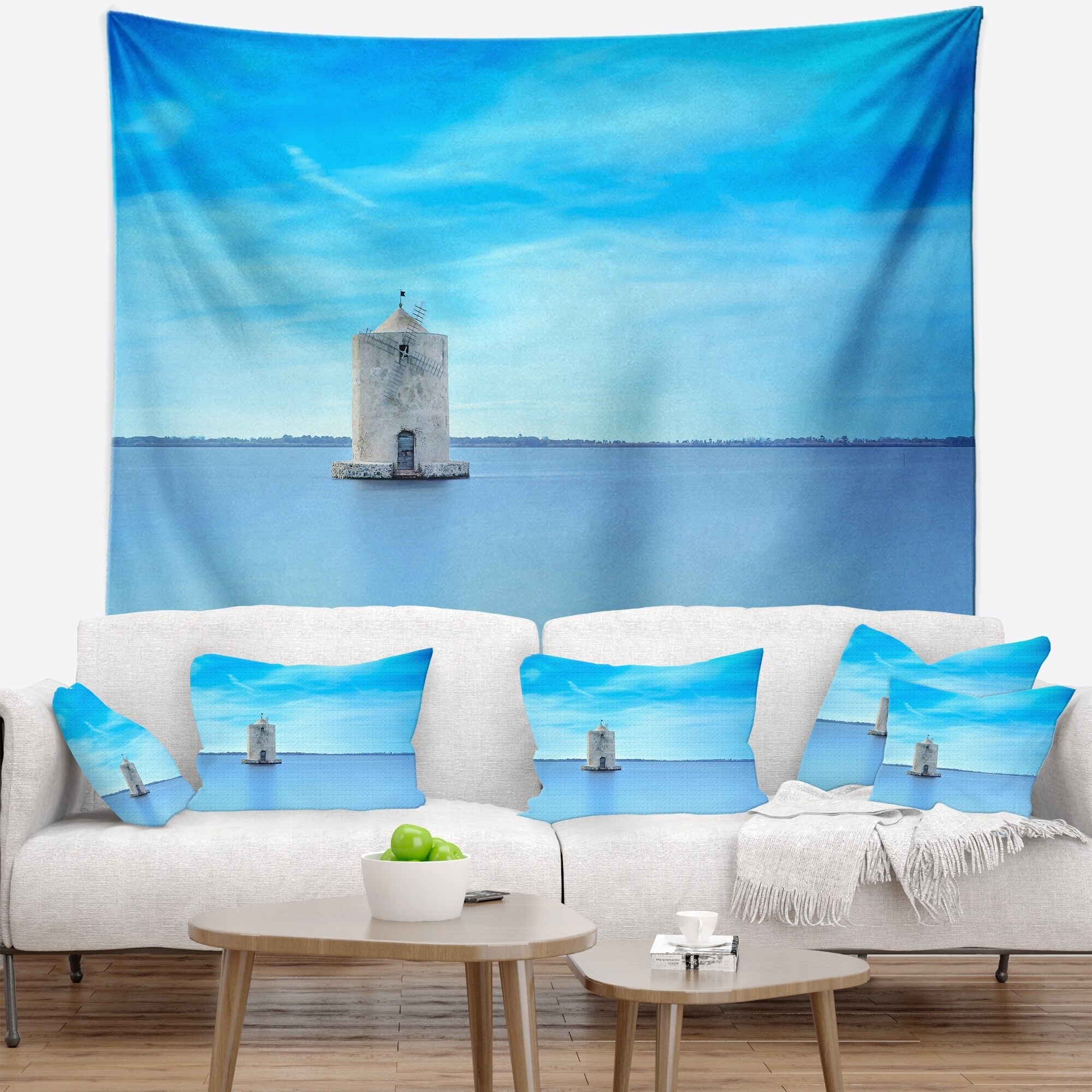 Designart 'Old Spanish Windmill in Blue Lagoon' Seashore Wall Tapestry