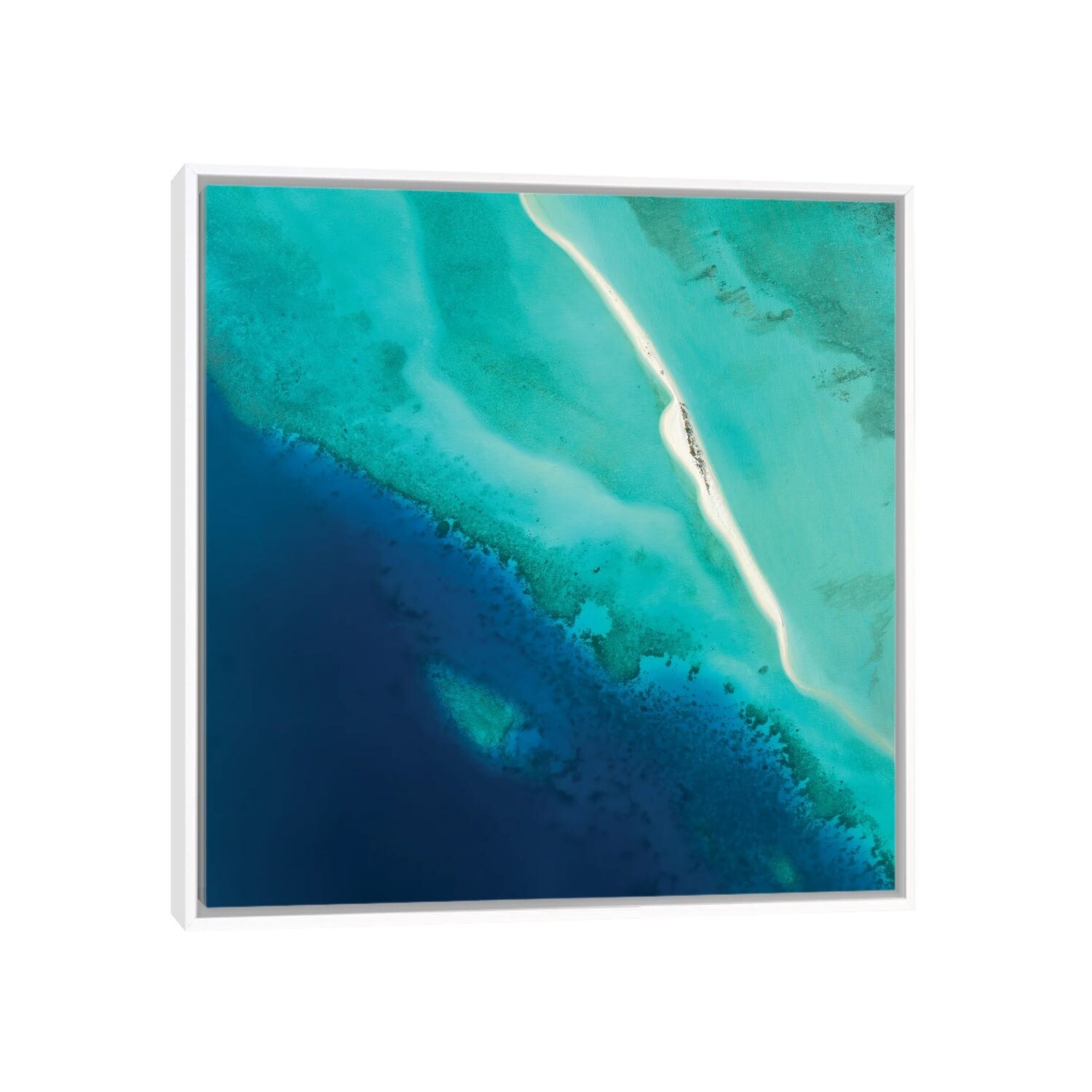 iCanvas "Aerial View of a Sandbank And Blue Lagoon in Maldives" by Jan Becke Framed