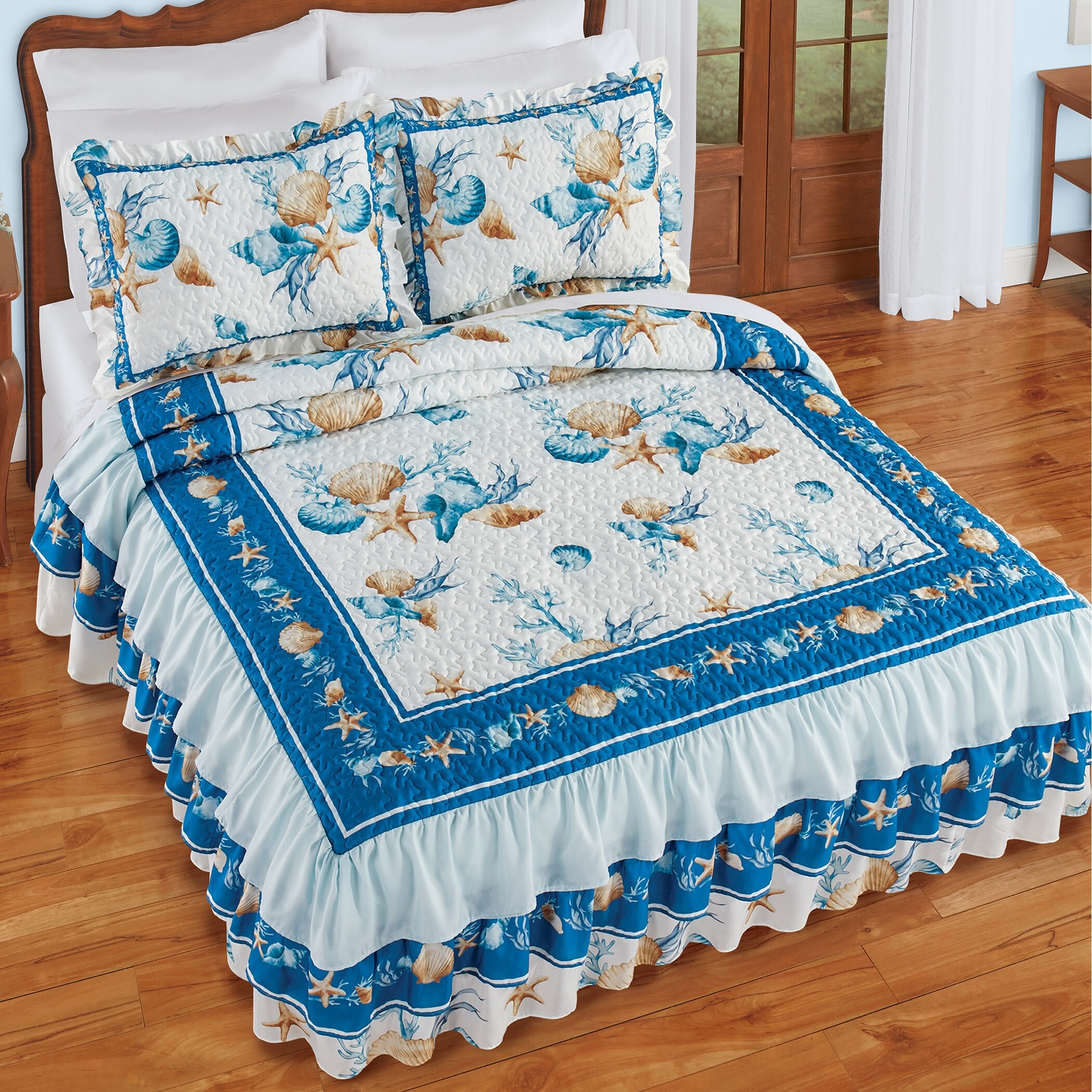 Charming Coastal Blue Lagoon Ruffled Bedspread