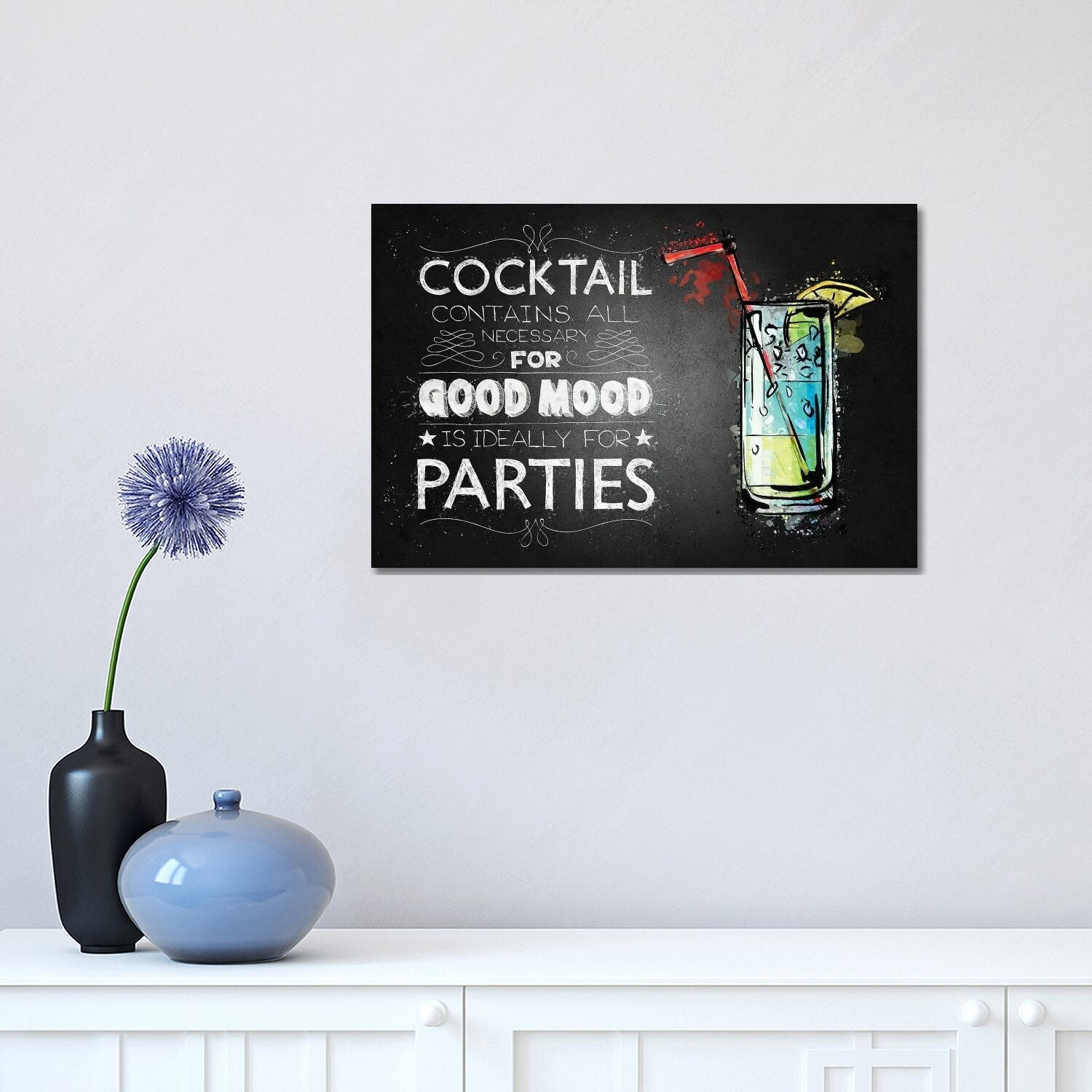 iCanvas "Blue Lagoon Cocktail Black Background" by Pixy Paper Canvas Print
