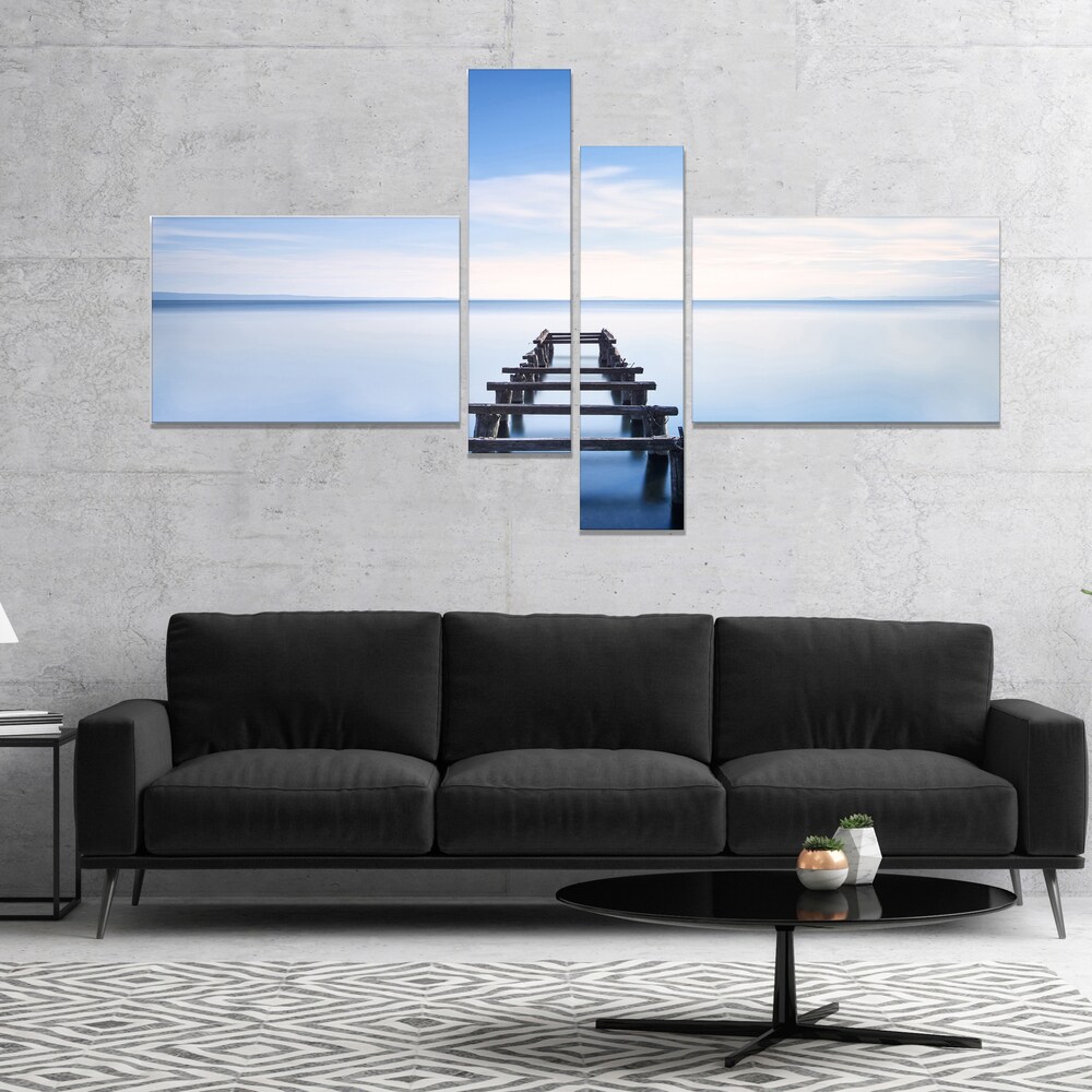 Designart "Jetty Remains in Blue Lake" Seascape Canvas Art Print