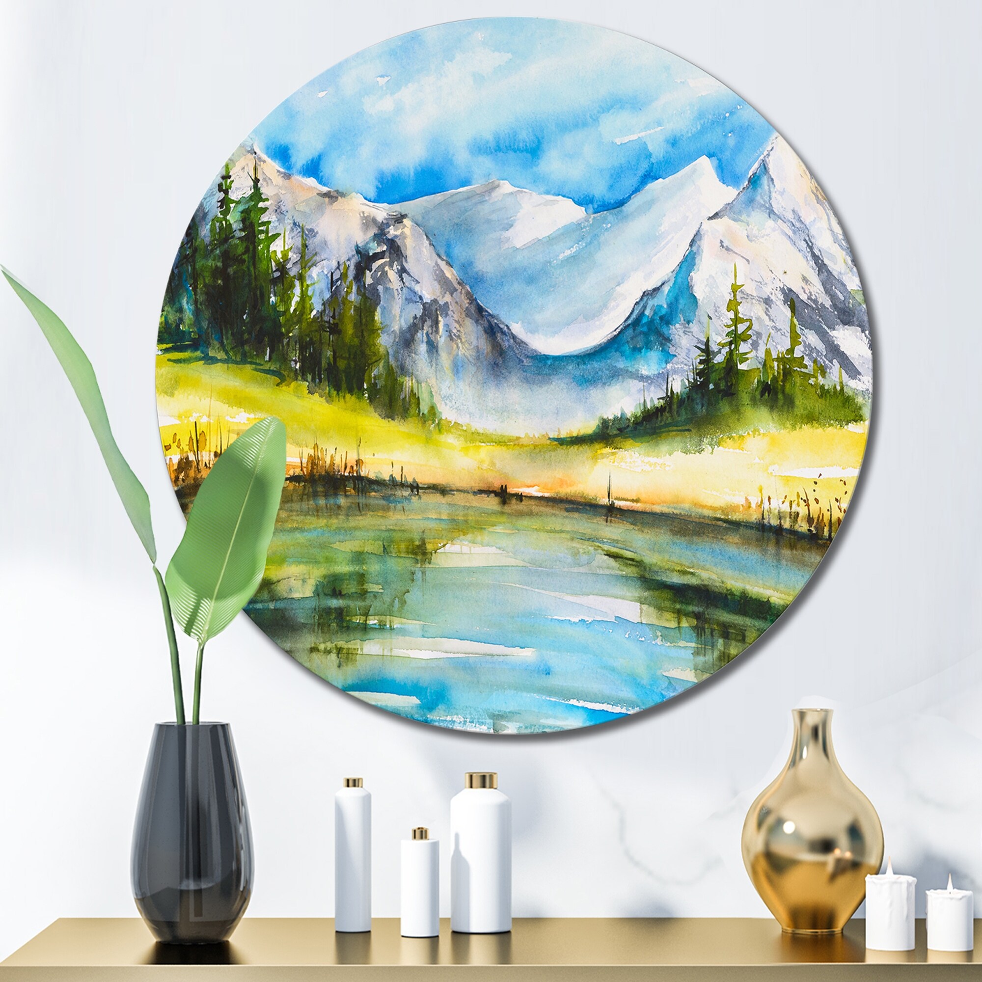 Designart 'Blue Lake With Mountain Valley' Country Metal Circle Wall Art