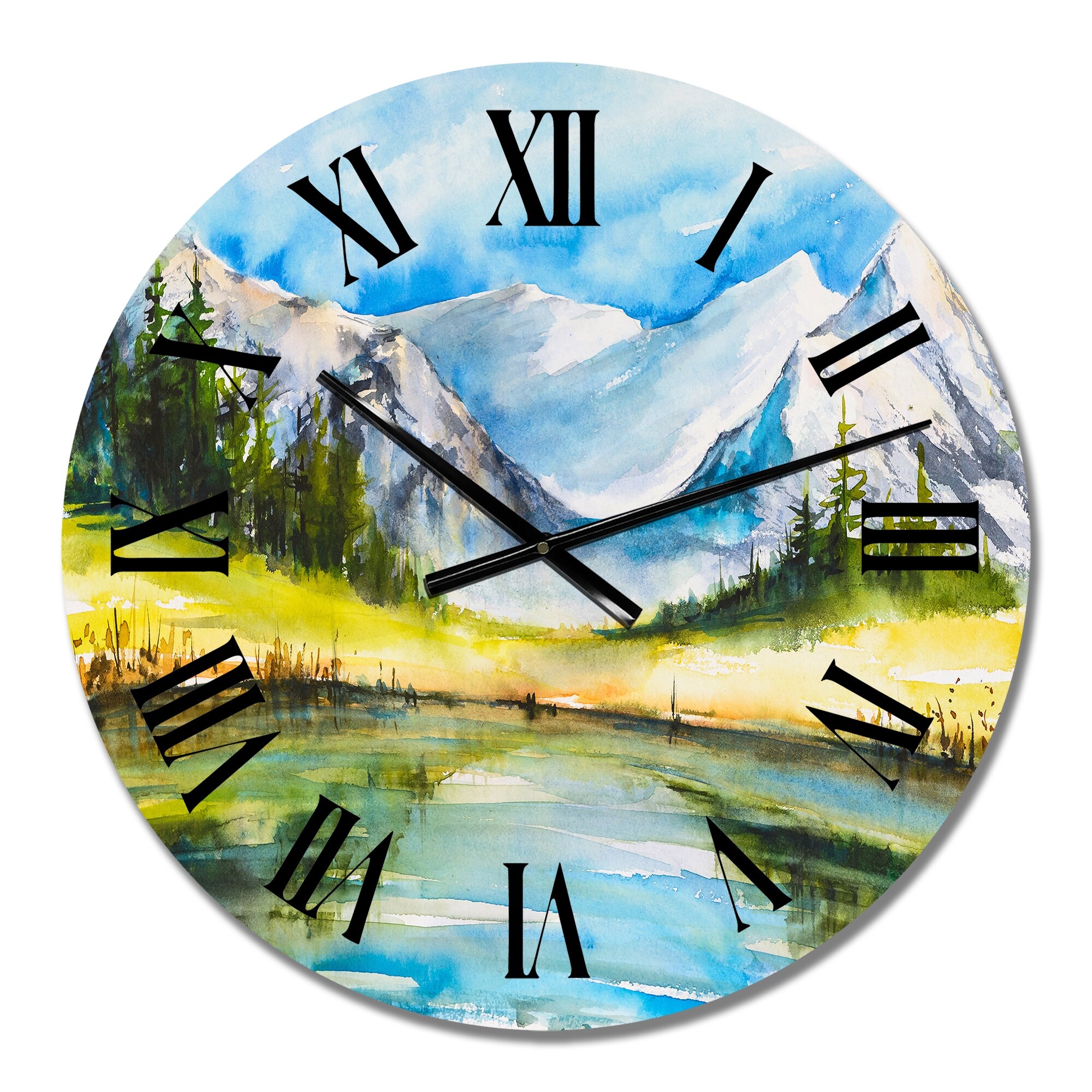 Designart 'Blue Lake With Mountain Valley' Country wall clock