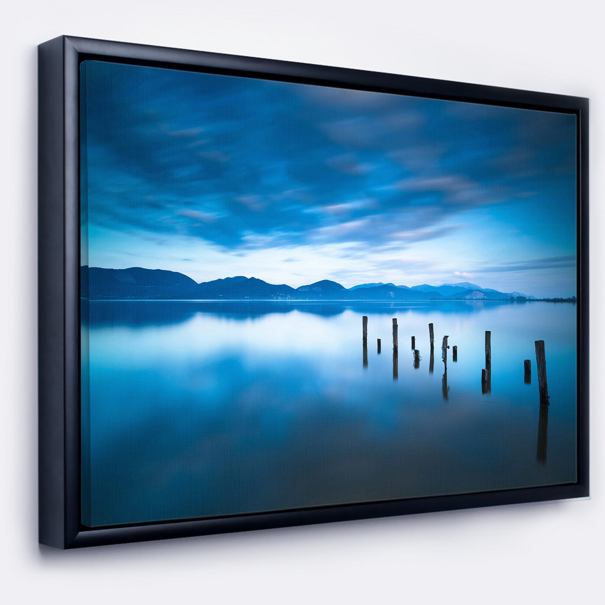 Designart "Blue Lake with Wooden Pier" Landscape Photography Framed Canvas Print