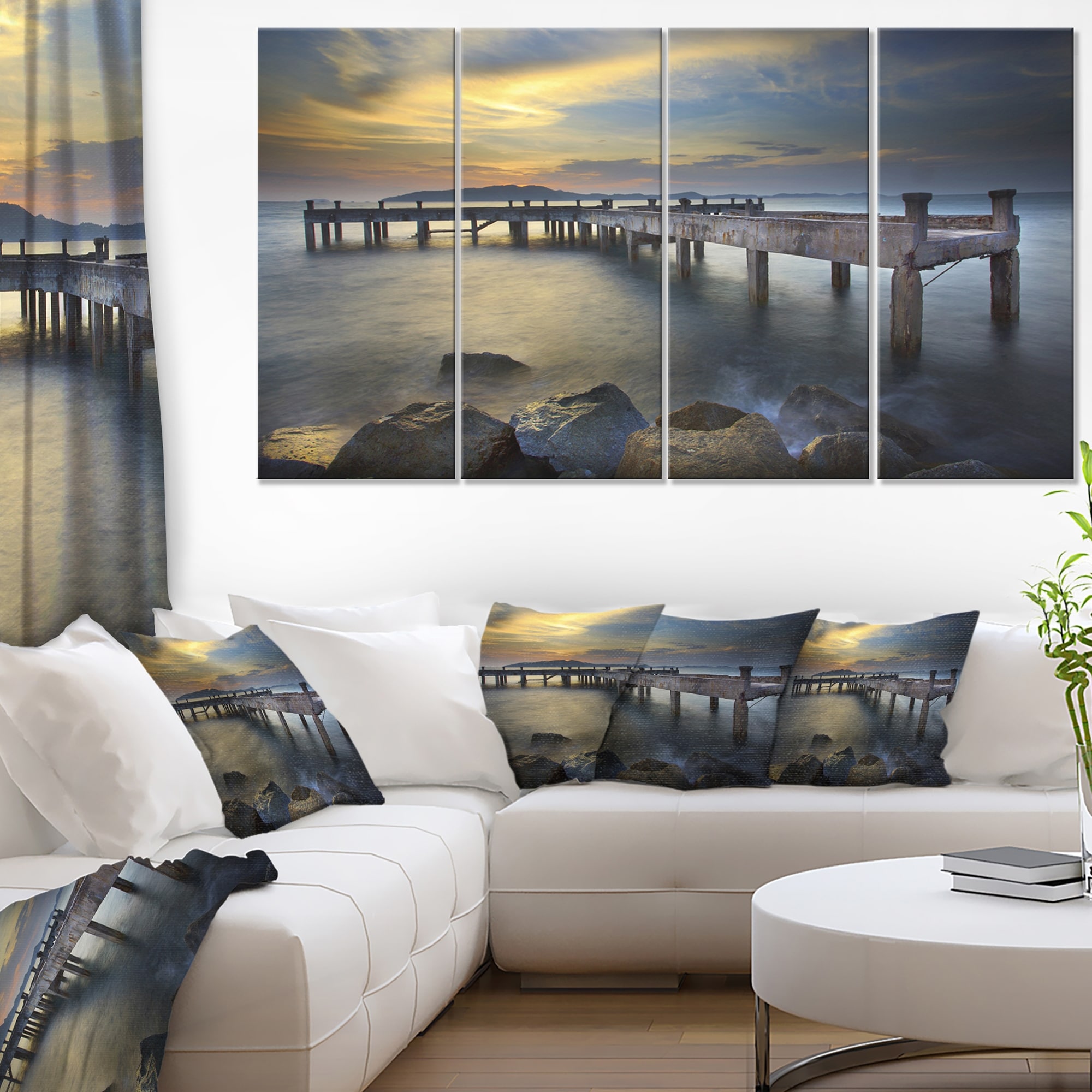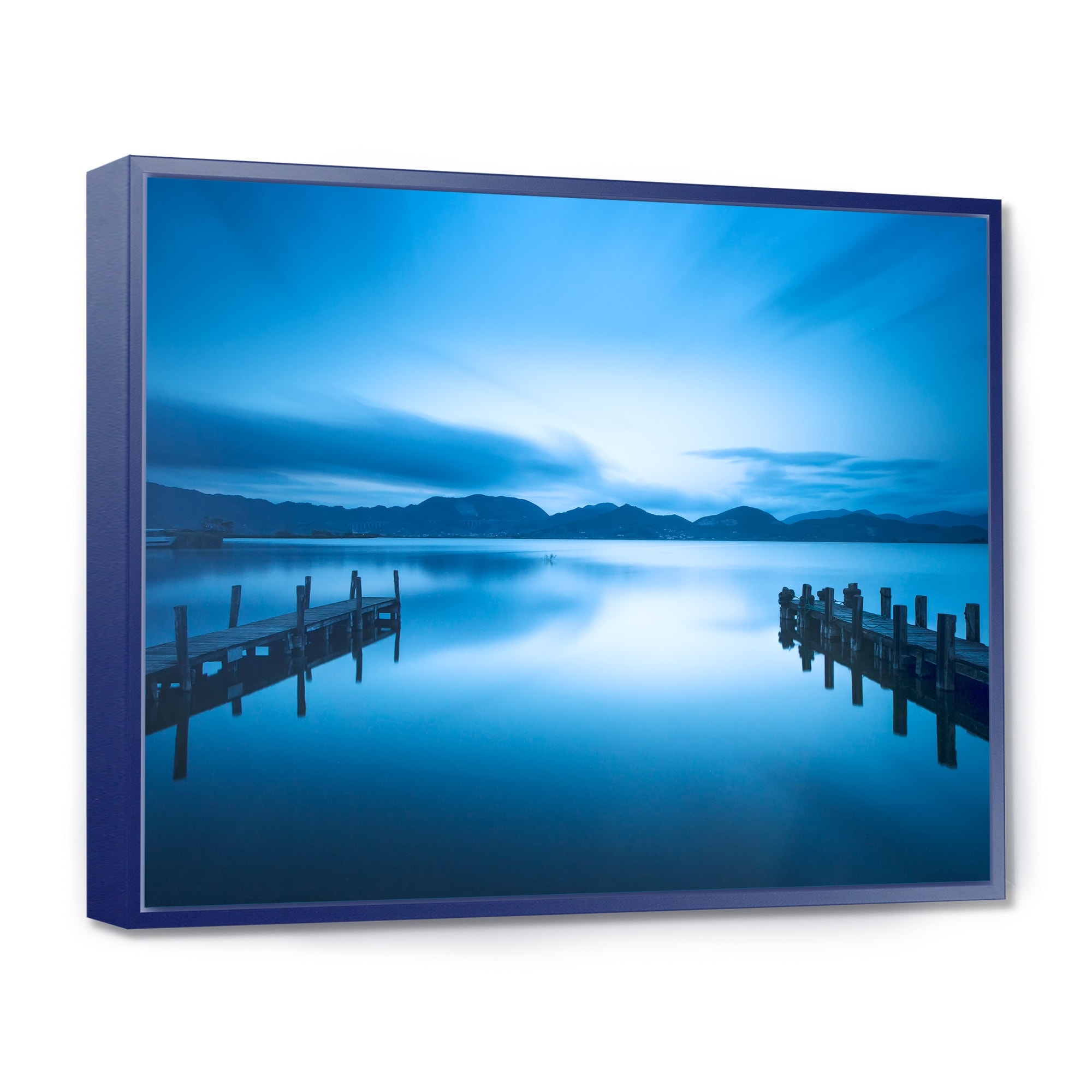 Designart "Dark Blue Sea and Piers" Seascape Framed Canvas Art Print