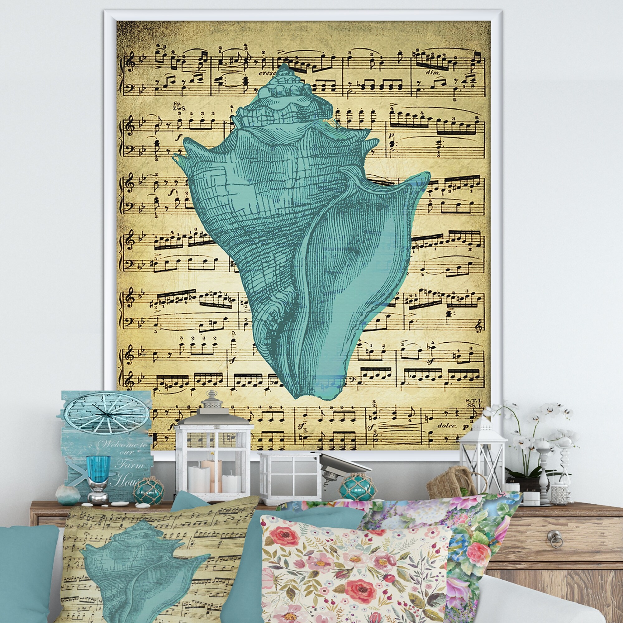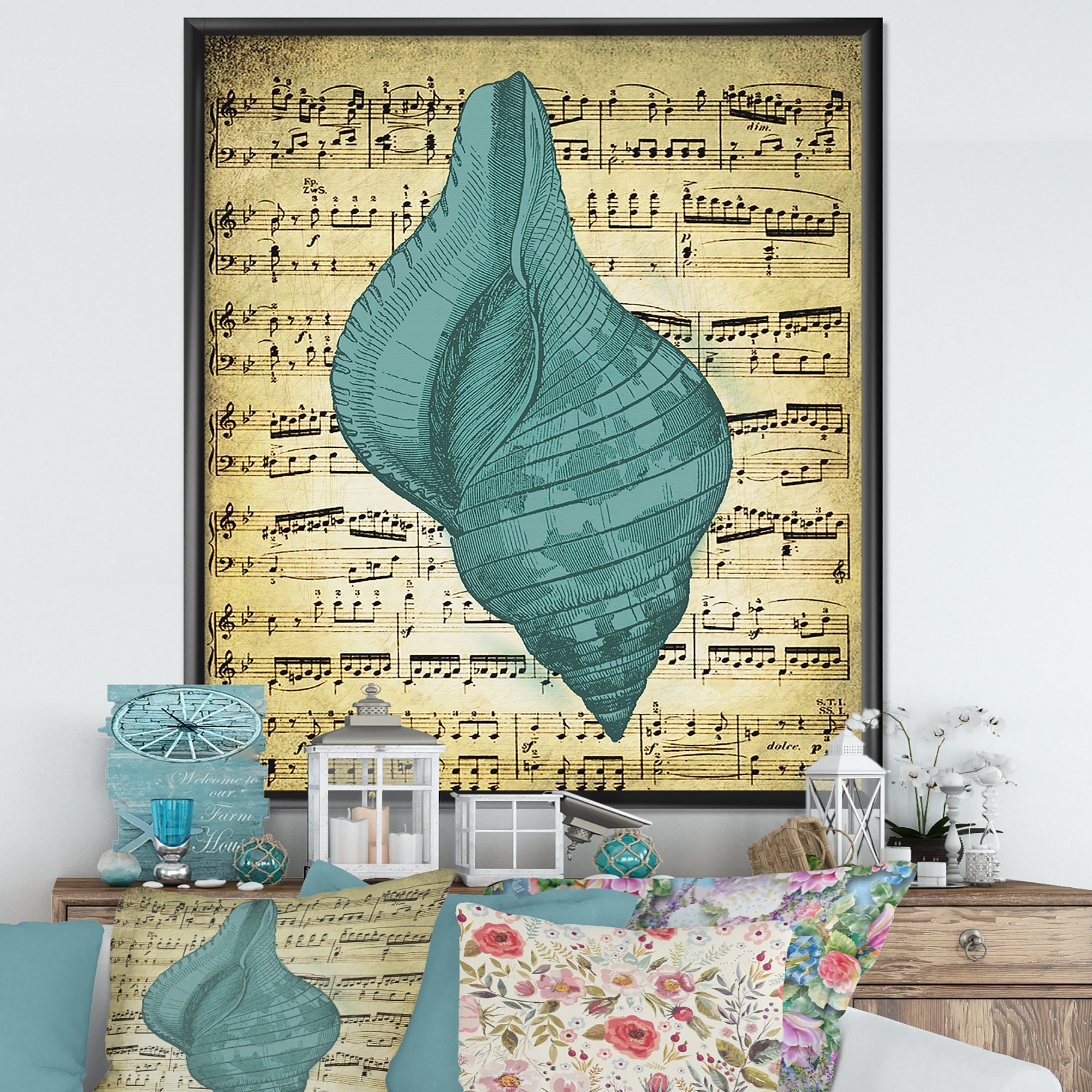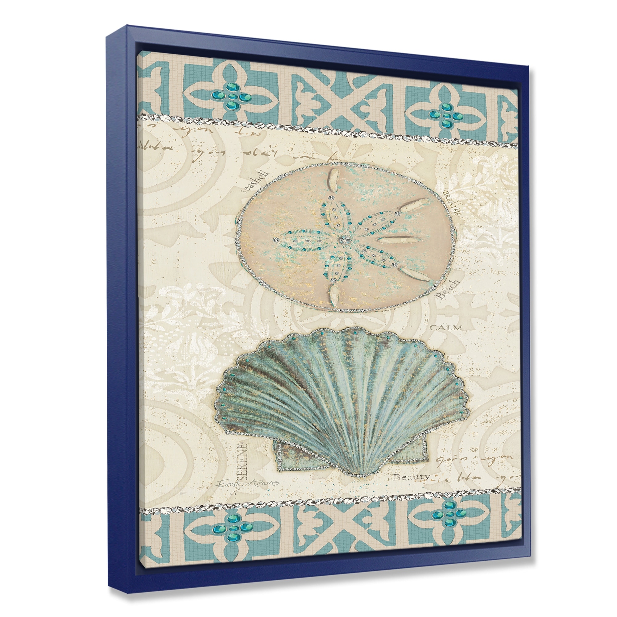 Designart "Seastar and Blue Sea Shell II" Nautical & Coastal Framed Canvas