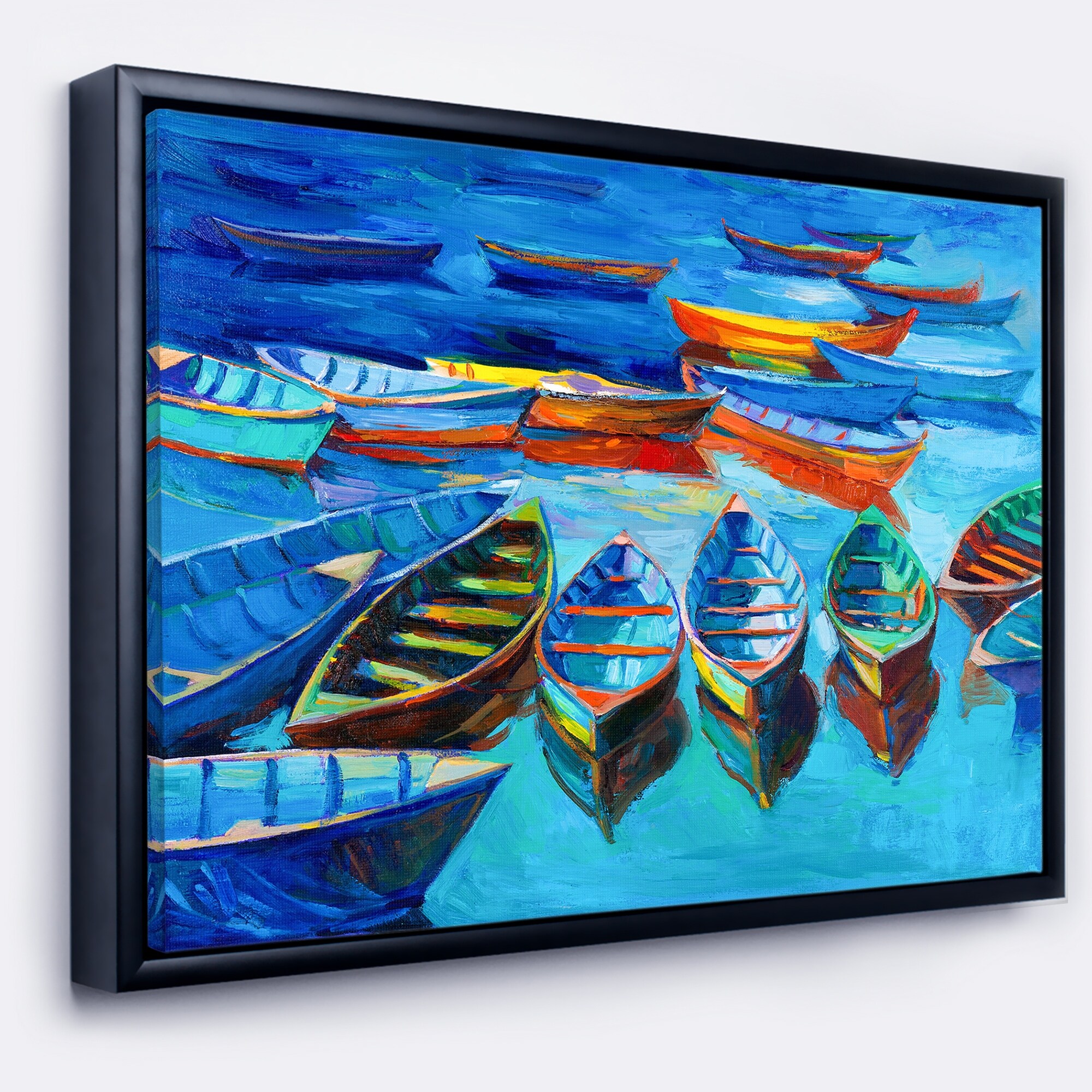 Designart "Boats in Blue Sea" Seascape Framed Canvas Art Print