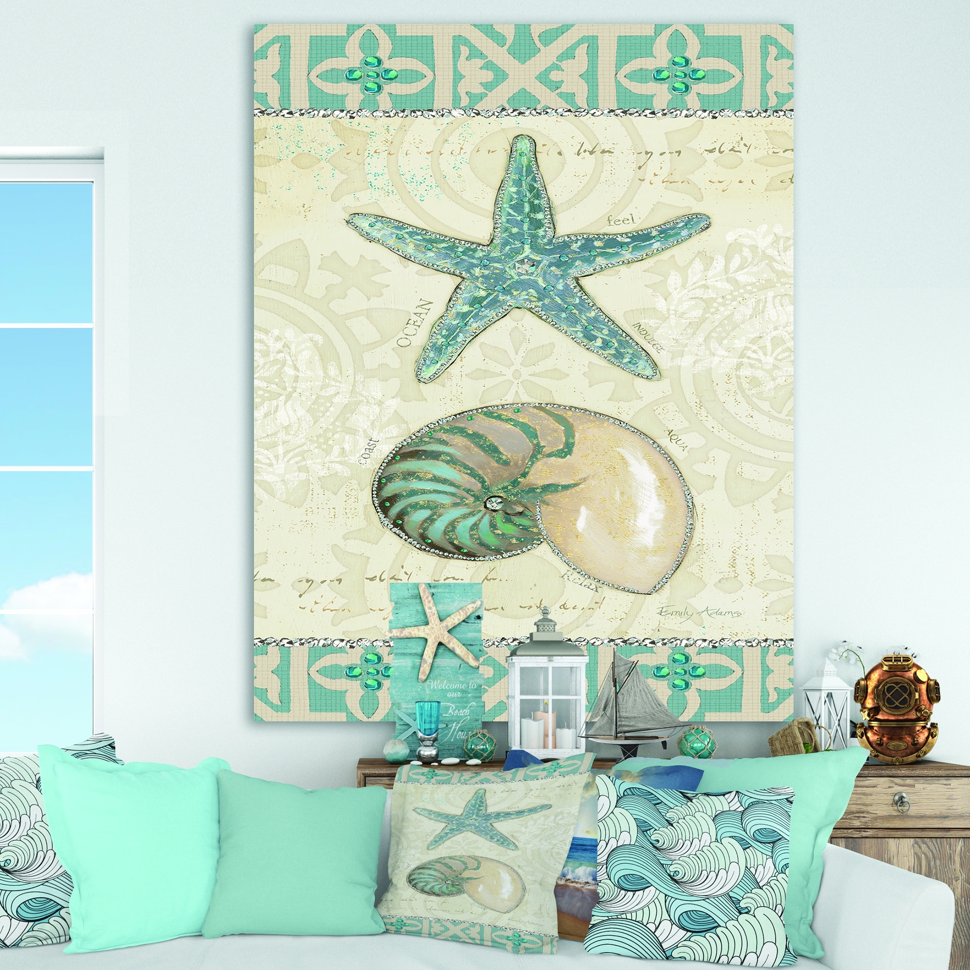 Designart "Seastar and Blue Sea Shell I" Nautical & Coastal Canvas Art