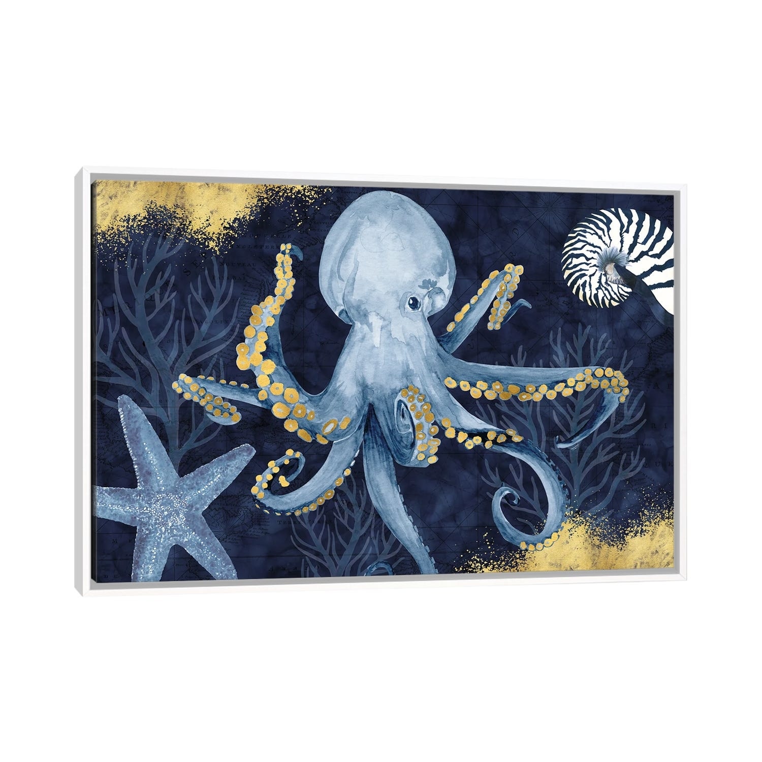 iCanvas "Deep Blue Sea I on Blue Gold" by Tara Reed Framed Canvas Print