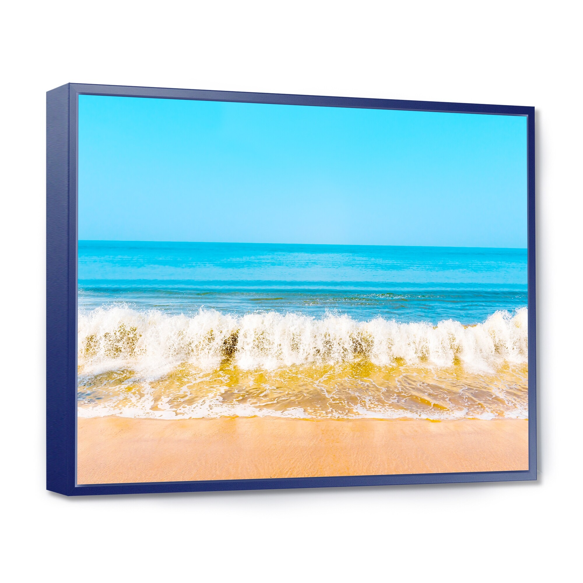 Designart "Beautiful Blue Sea and Roaring Waves" Beach Photo Framed Canvas Print