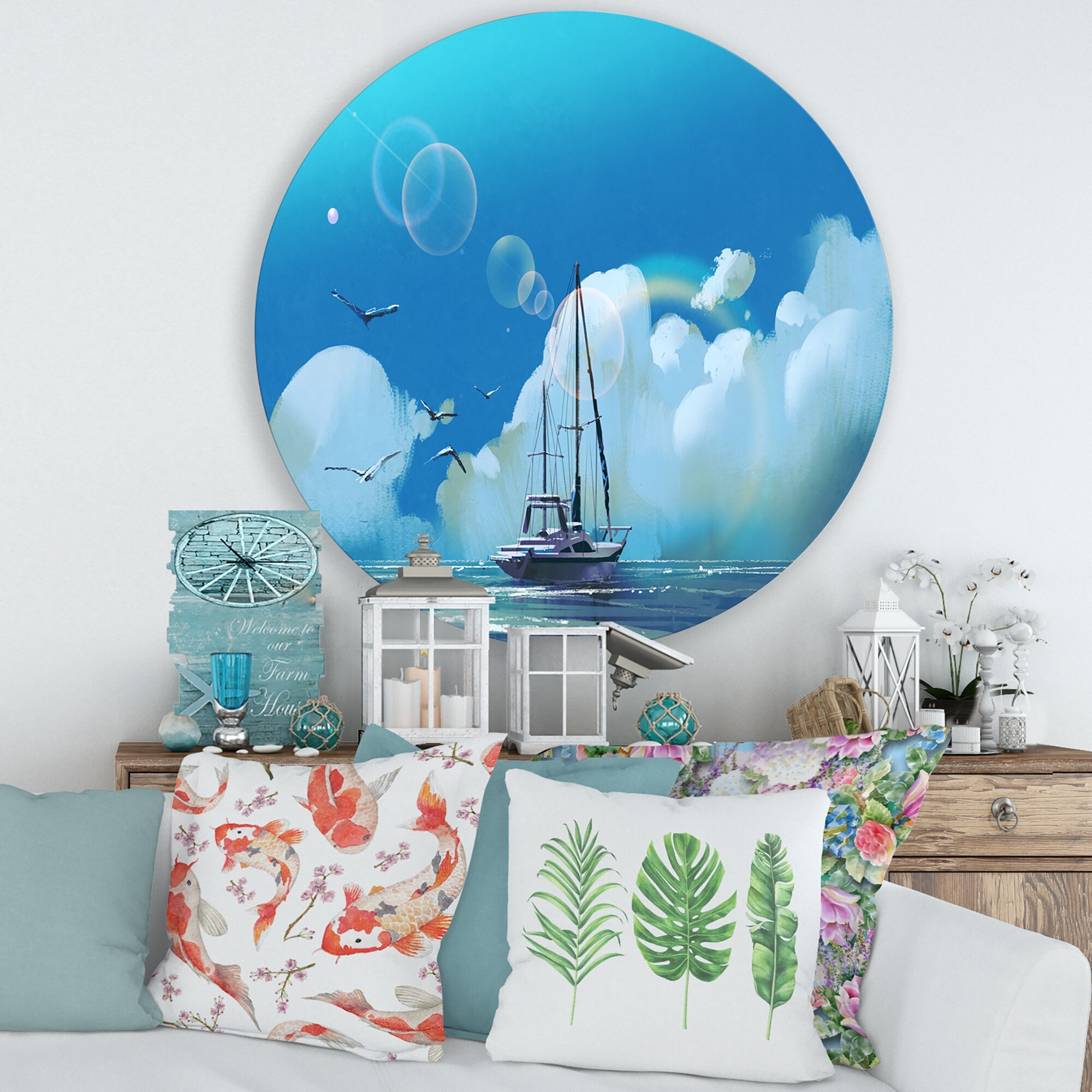 Designart 'Blue Sea 2' Nautical & Coastal Metal Circle Wall Art
