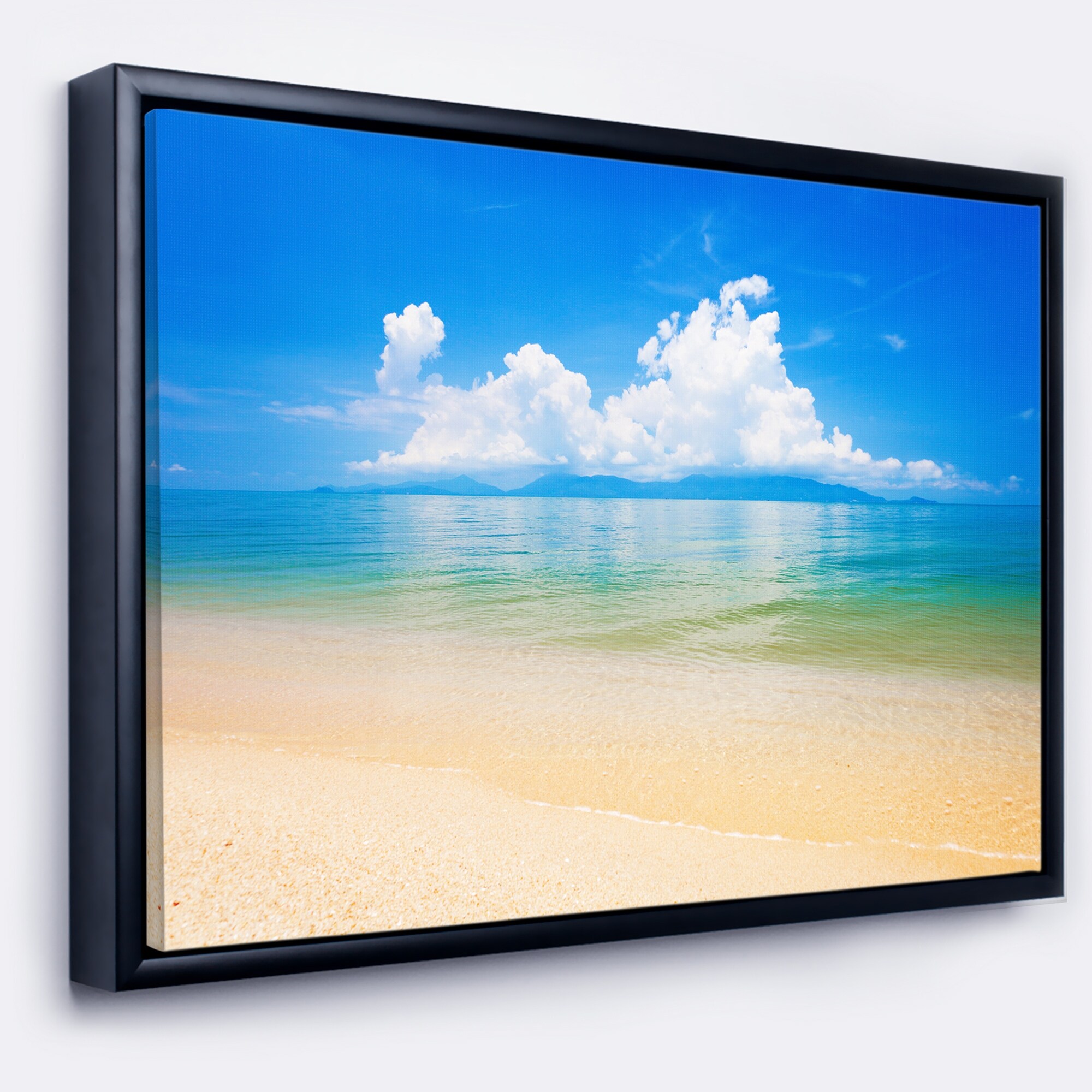 Designart "Blue Sea and Sky with Sandy Beach" Seashore Framed Canvas Art Print