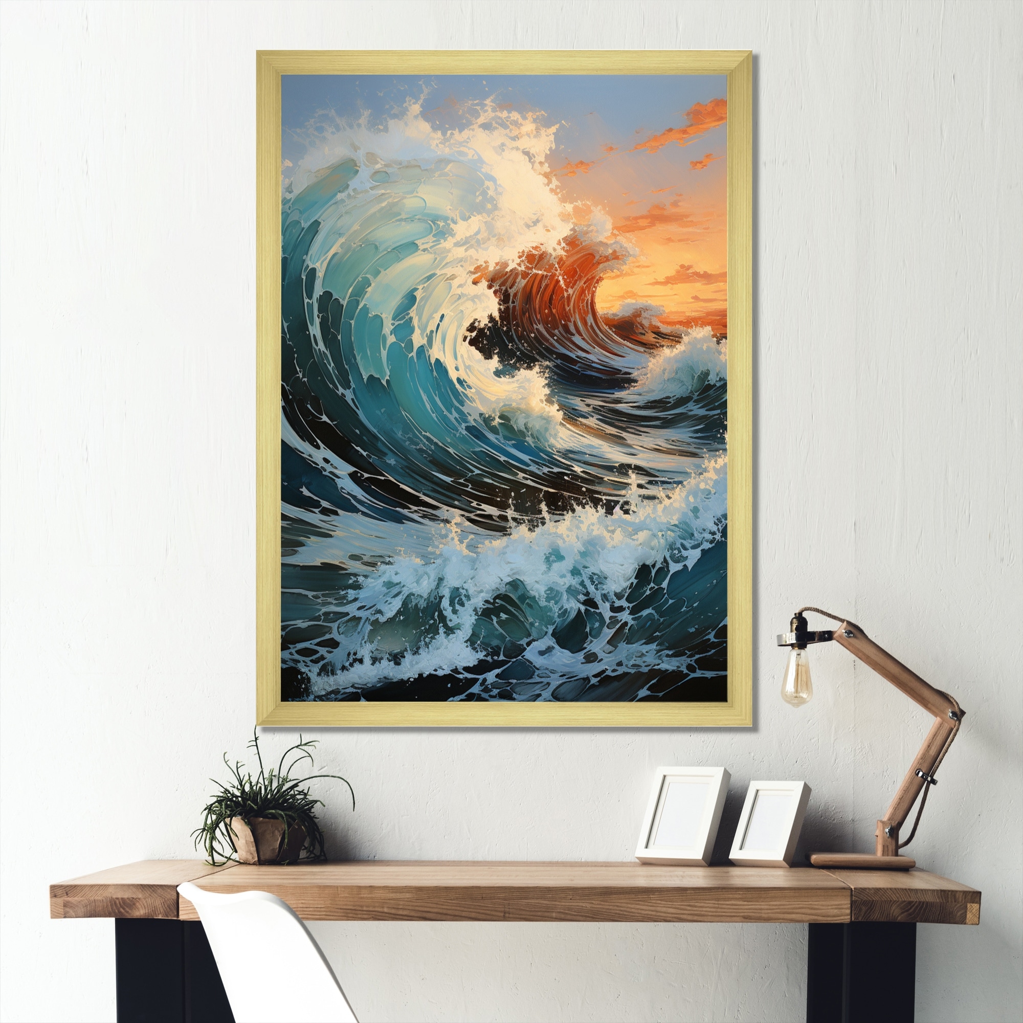 Designart "Orange Tealboat Energetic Storm II" Boat Framed Wall Art Prints