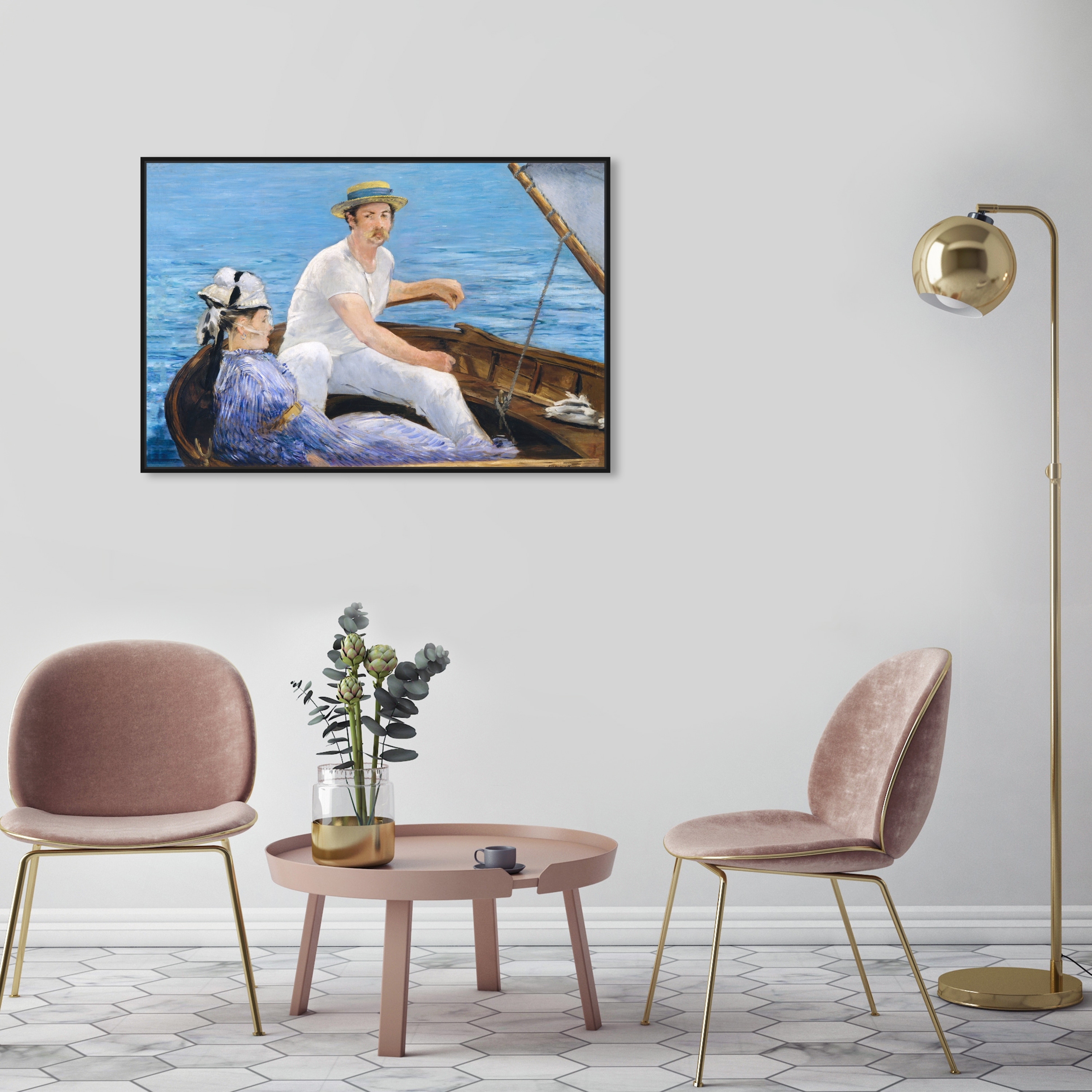 Oliver Gal 'Manet - Boating 1974' Classic and Figurative Blue Wall Art Canvas Print