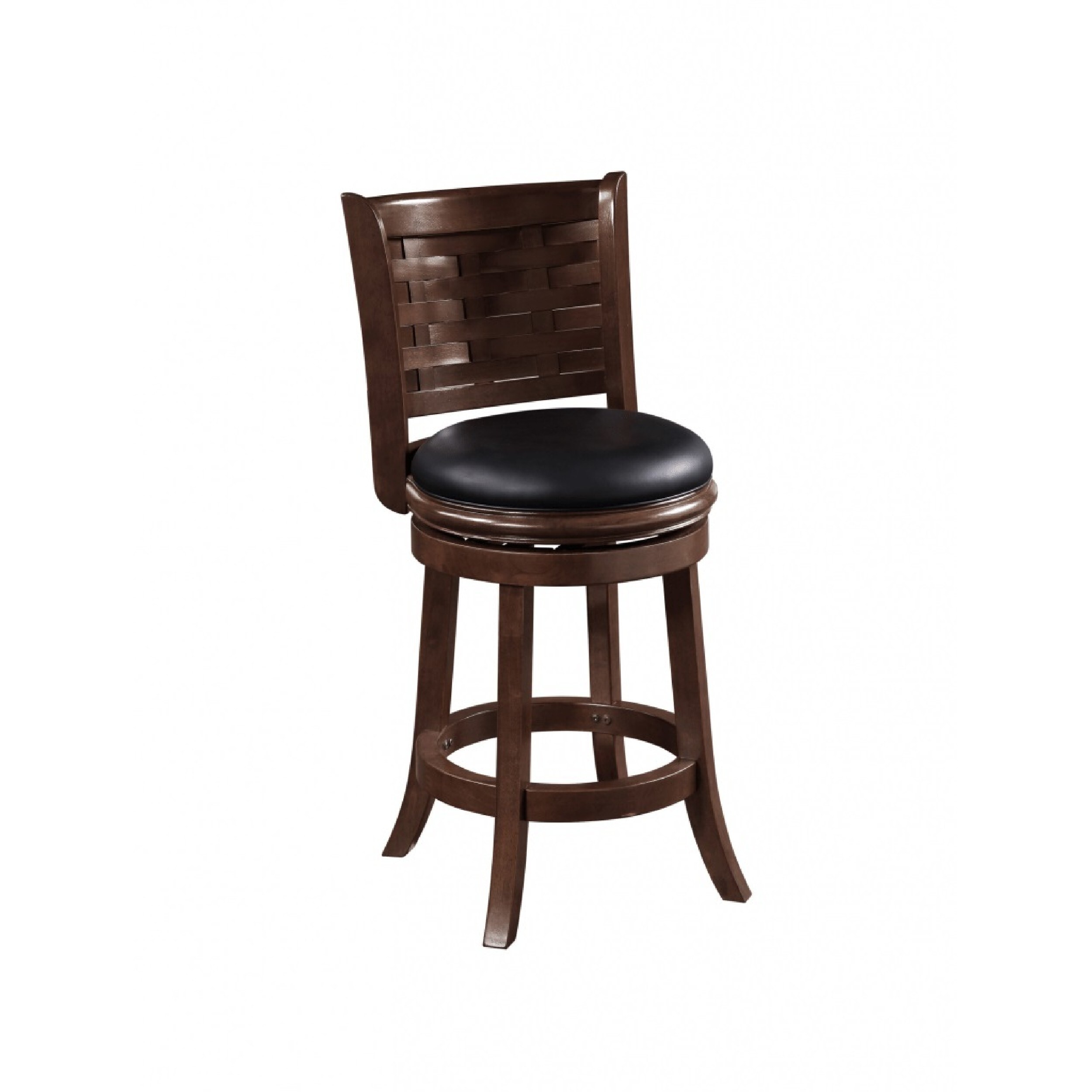 Kim 24 Inch Counter Stool, Solid Wood, Bonded Leather, Espresso, Black