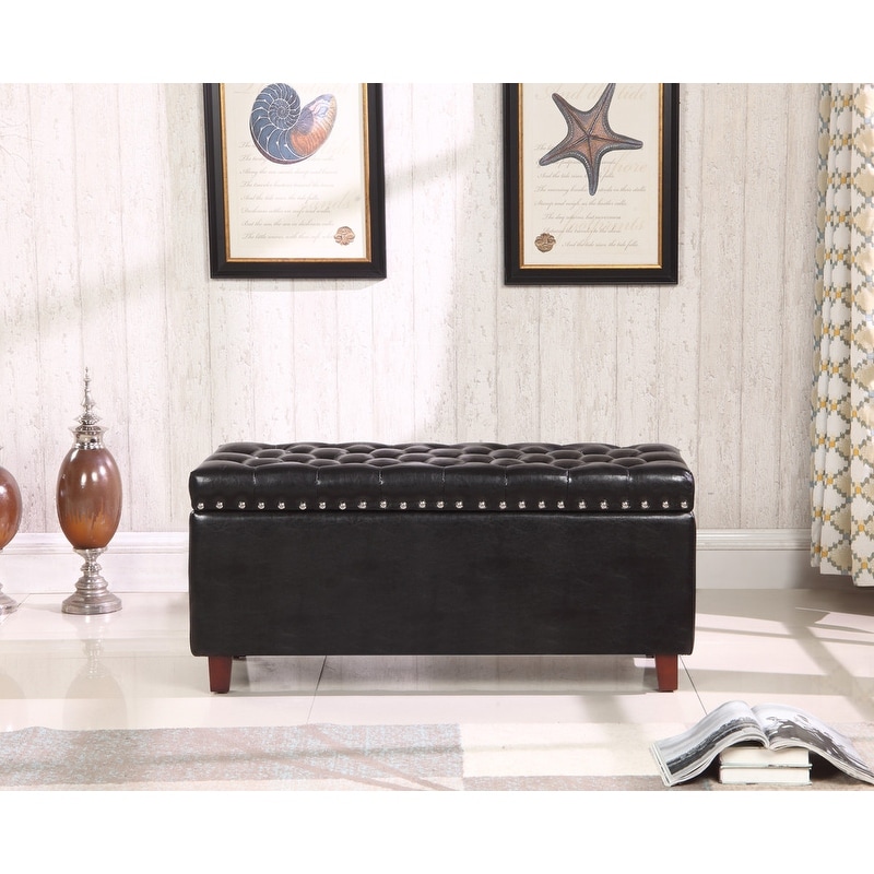 Adeco Tufted Bottom Bonded Leahter Brown Rectangle Storage Ottoman