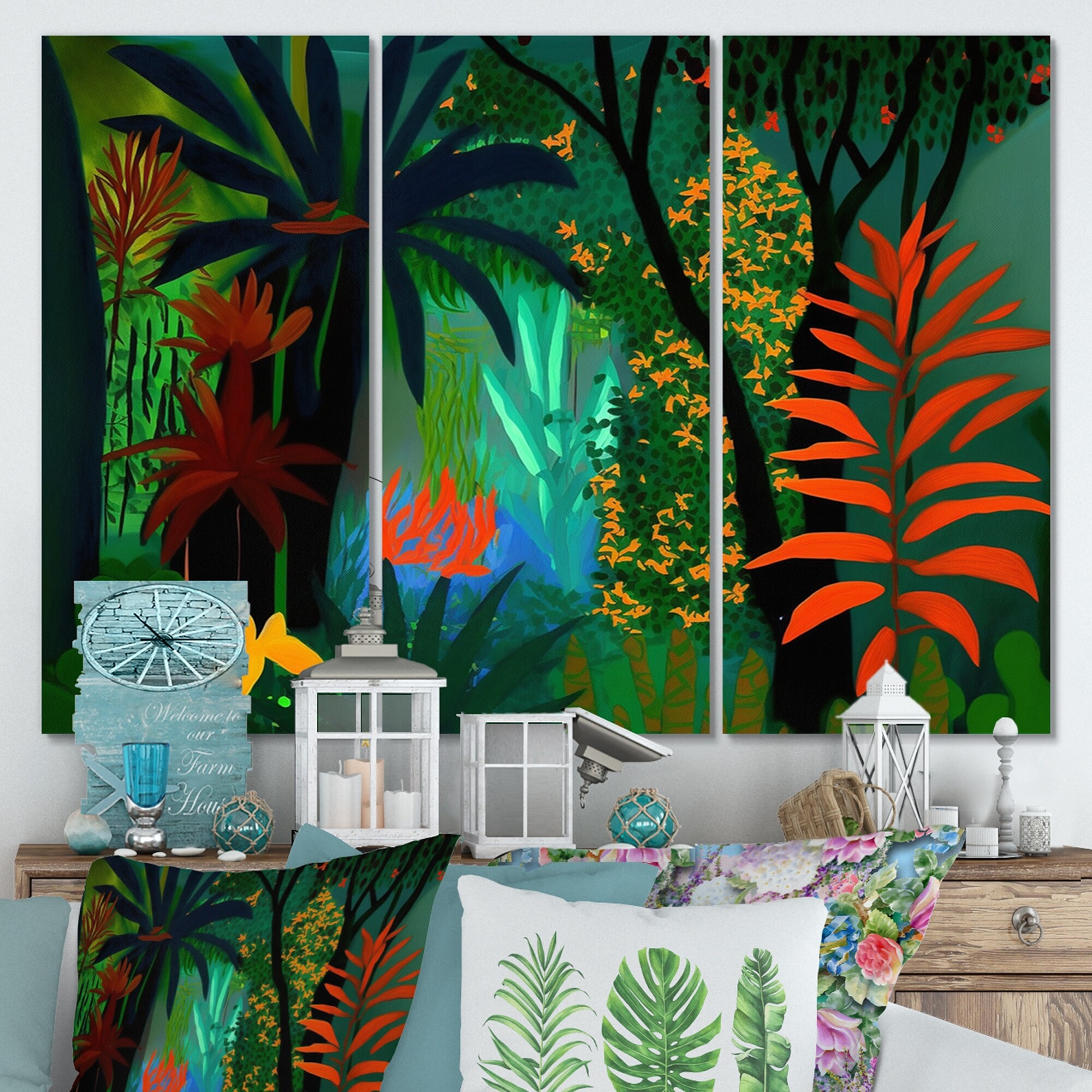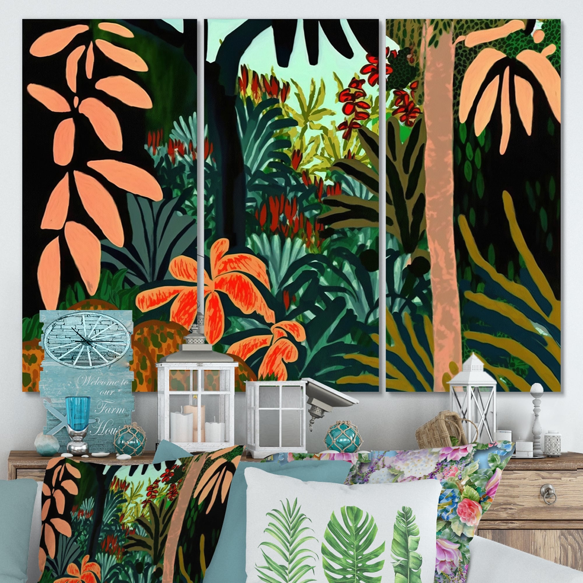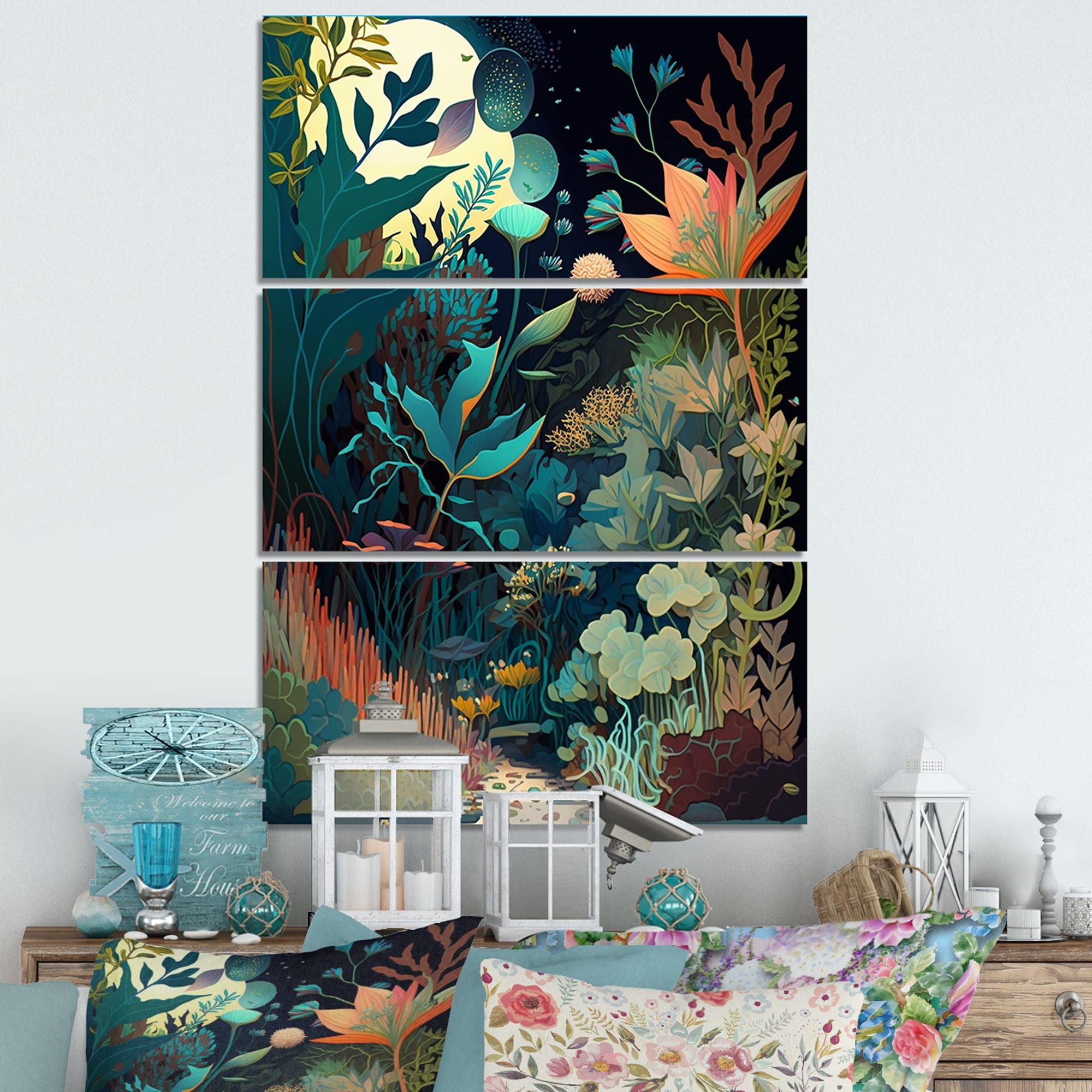 Designart "Bounties And Blooming Wilderness Blessings IV" Floral Canvas Art Print - 3 Panels