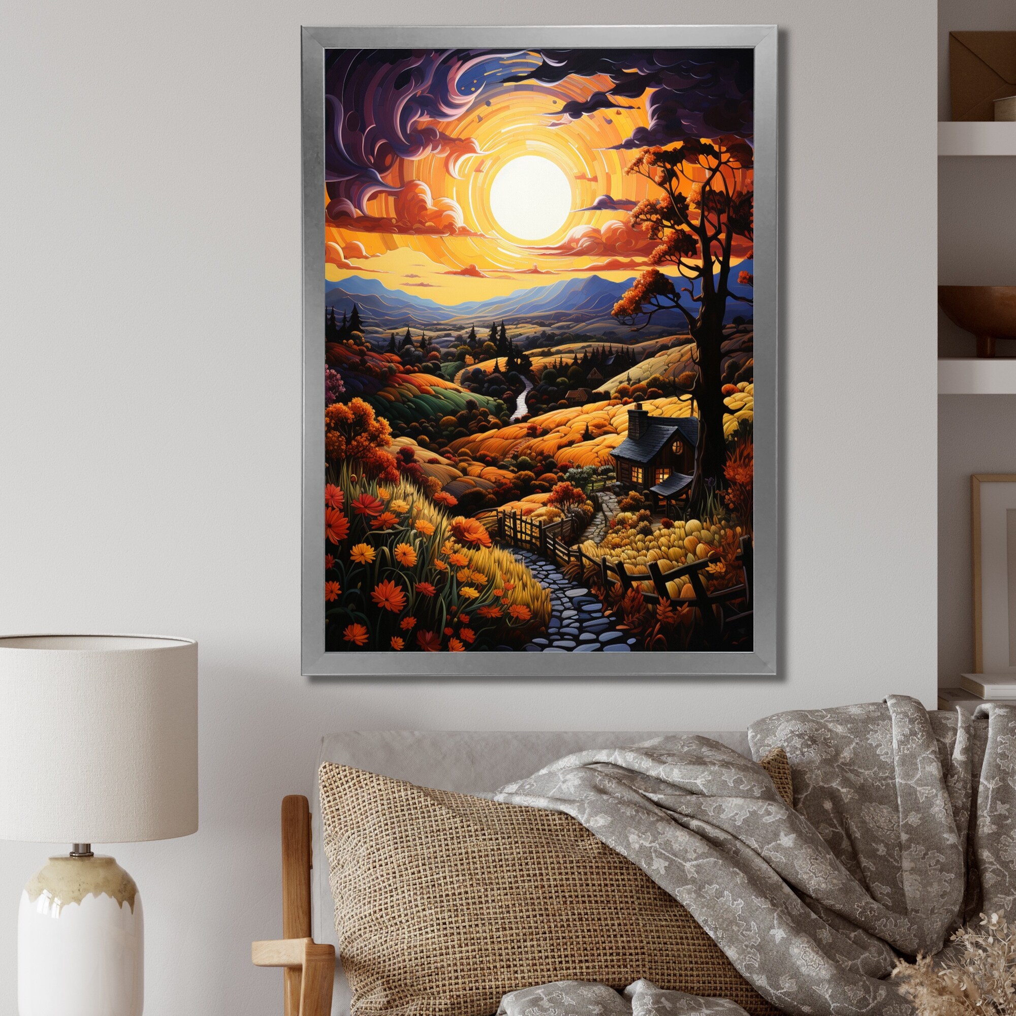 Designart "Countryside Bountiful Vineyard Patchwork II" Countryside Framed Wall Art Living Room