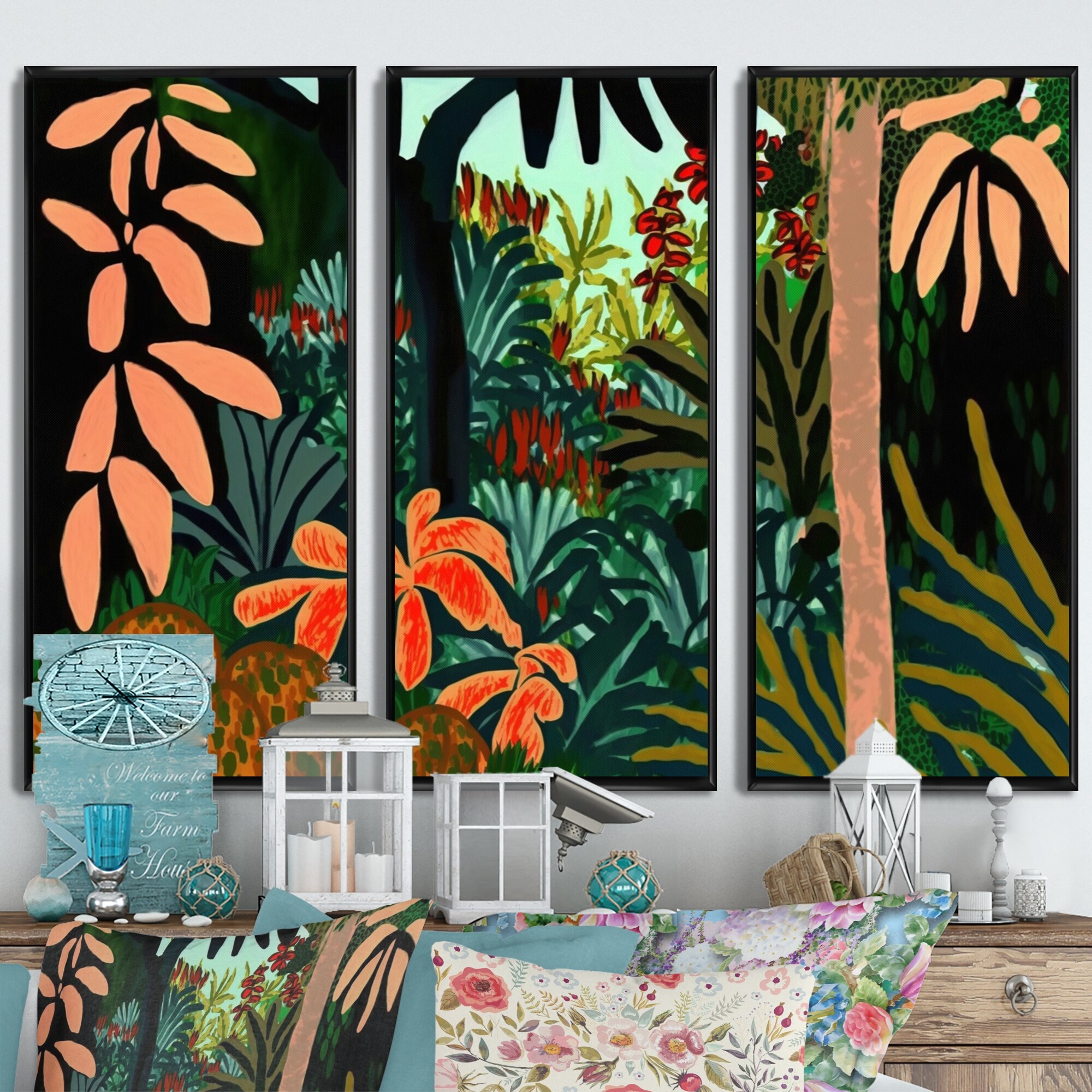 Designart "Bounties And Blooming Wilderness Blessings I" Floral & Botanical Framed Canvas Wall Art Print - 3 Panels
