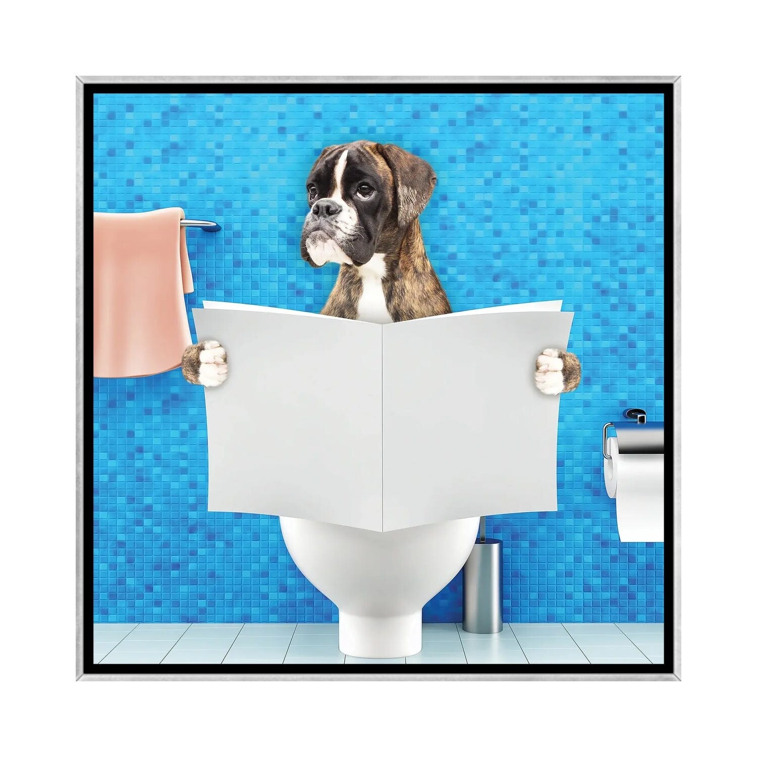 iCanvas "Boxer Sitting on A Toilet Seat Reading" by helga1981 Framed