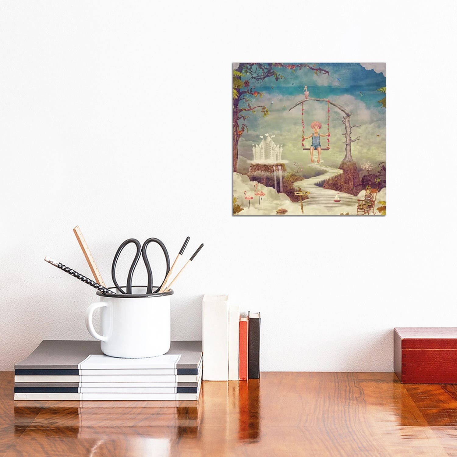 iCanvas "Small Boy on A Swing in Sky . City of Children on Fantastic Clouds" by natamc Canvas Print