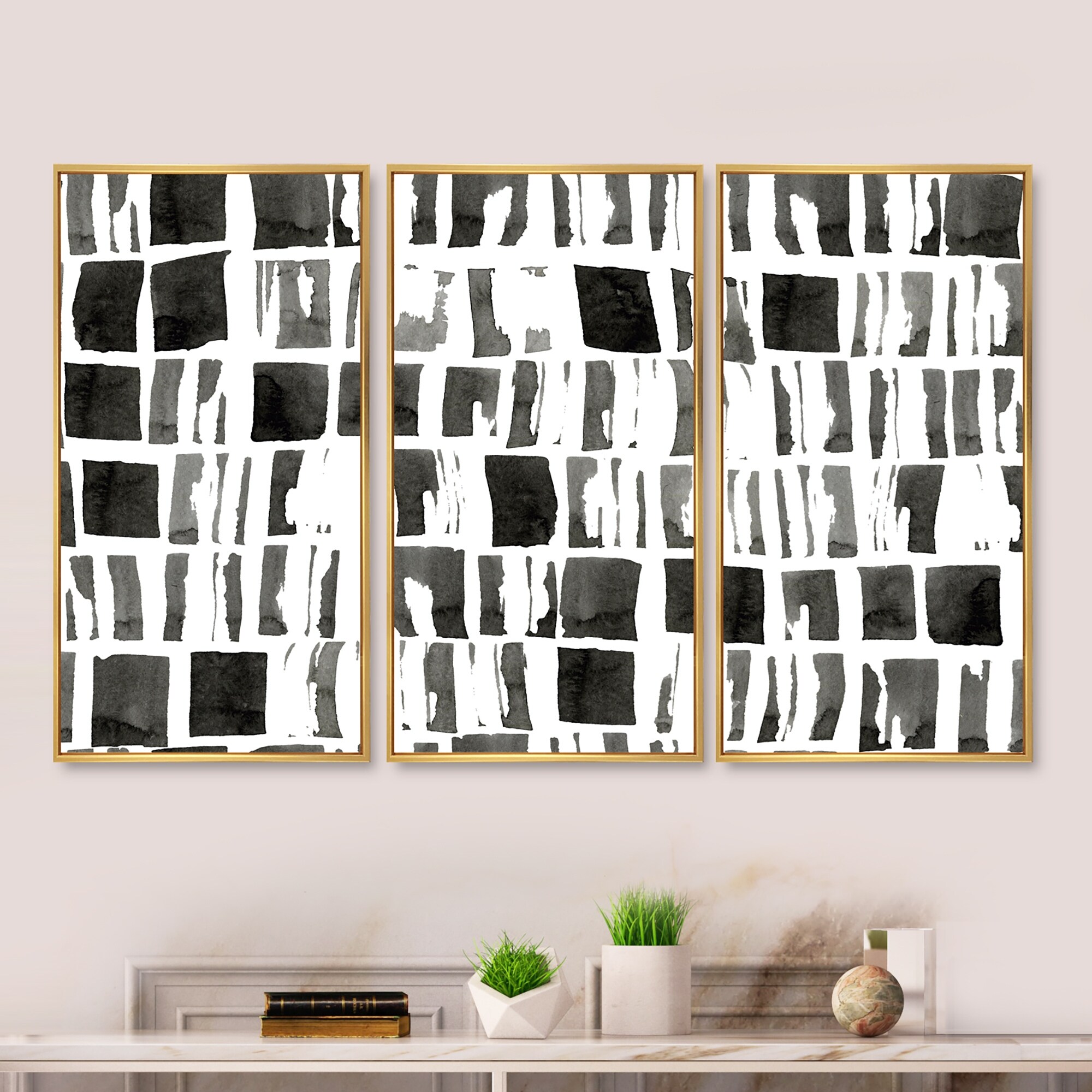 Designart "Abstract Monochrome Bricks" Modern Framed Art Prints Set of 3 - 4 Colors of Frames