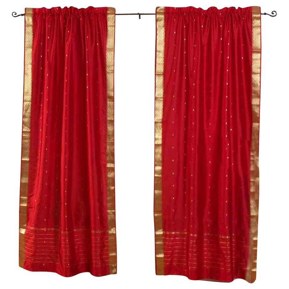 Fire Brick Rod Pocket Sheer Sari Curtain / Drape / Panel - Pair