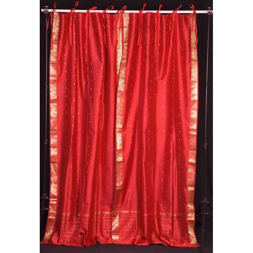 Fire Brick Tie Top Sheer Sari Curtain / Drape / Panel - Pair