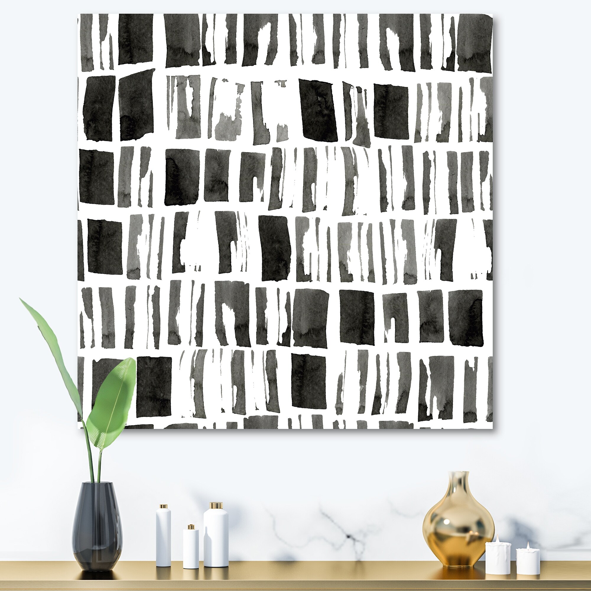Designart "Abstract Monochrome Bricks" Modern Canvas Wall Art Print