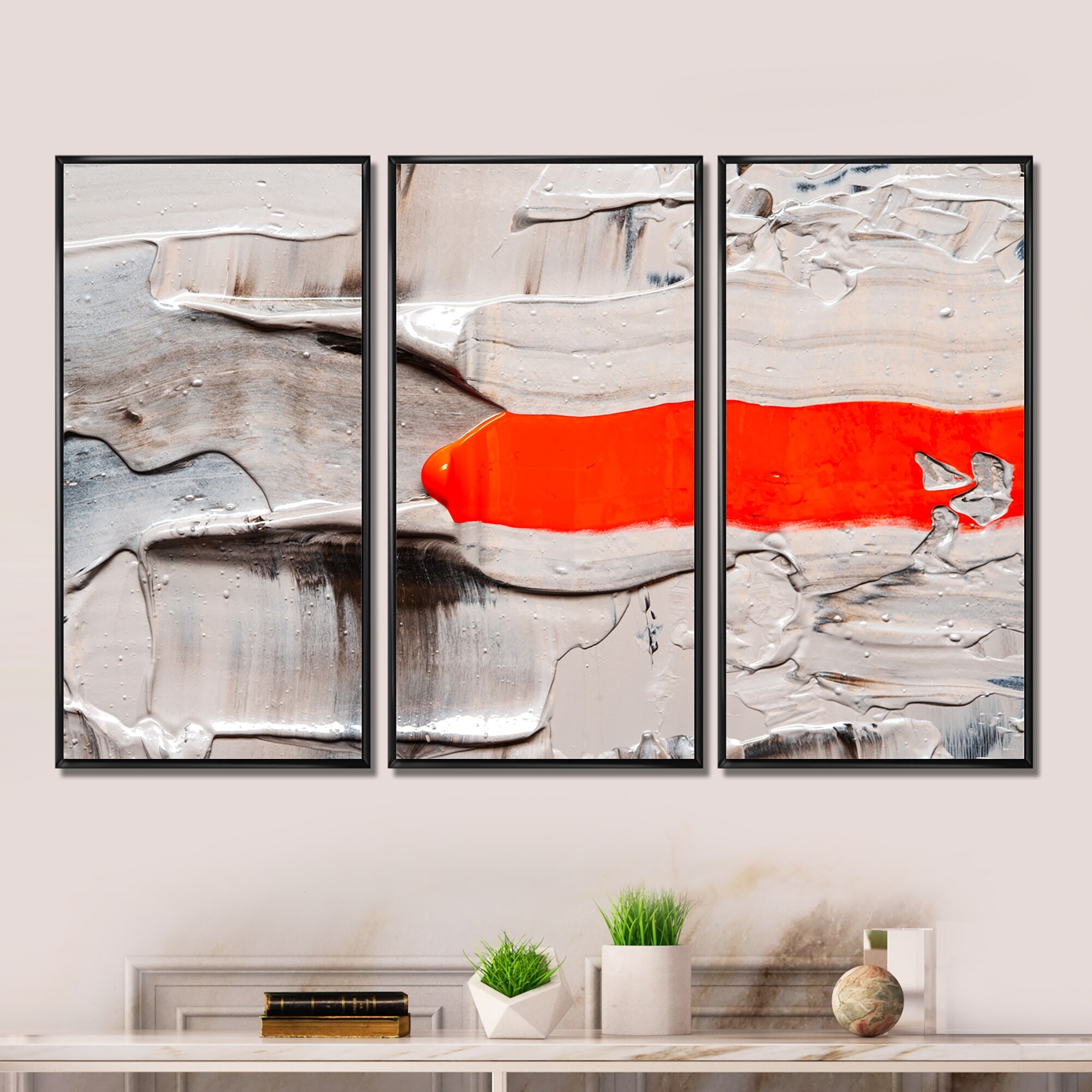 Designart "Red Wave on Broken White Background" Modern & Contemporary Framed Wall Art Set of 3 - 4 Colors of Frames