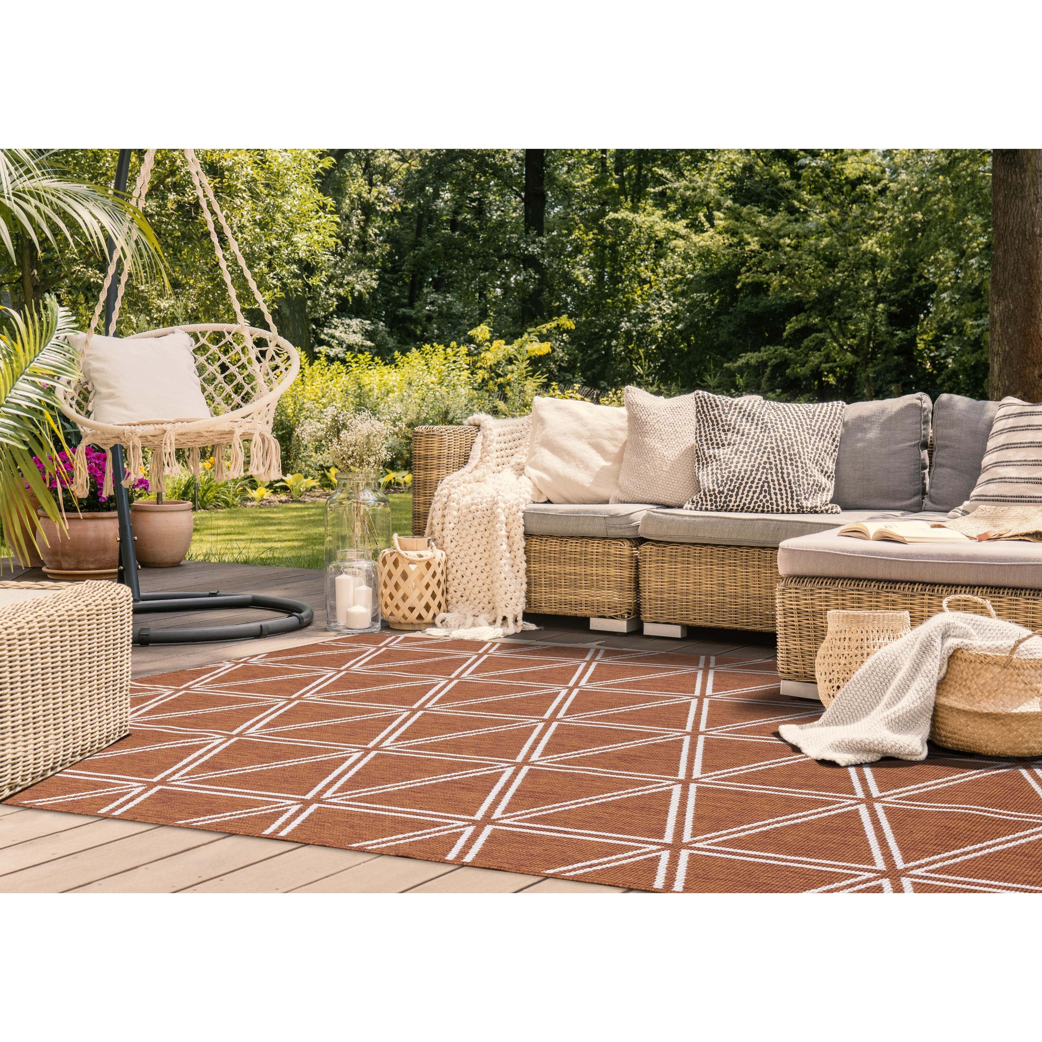 Brooke Collection - Orange/ White Geometric Diamond Pattern Outdoor Rug