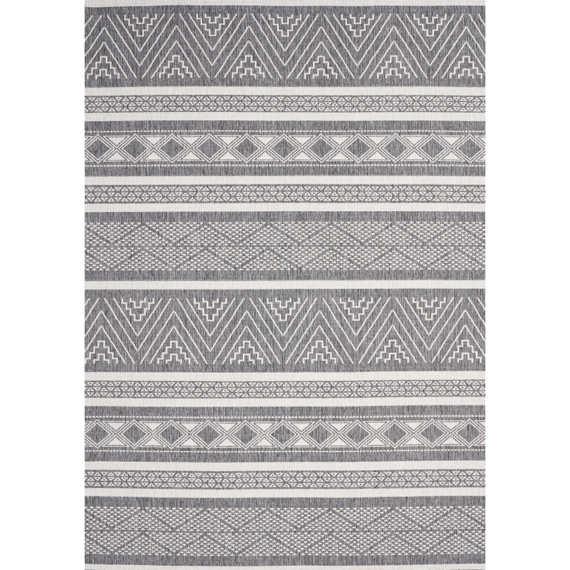 Brooke Collection - White/Grey Tribal Banded Reversible Outdoor Rug