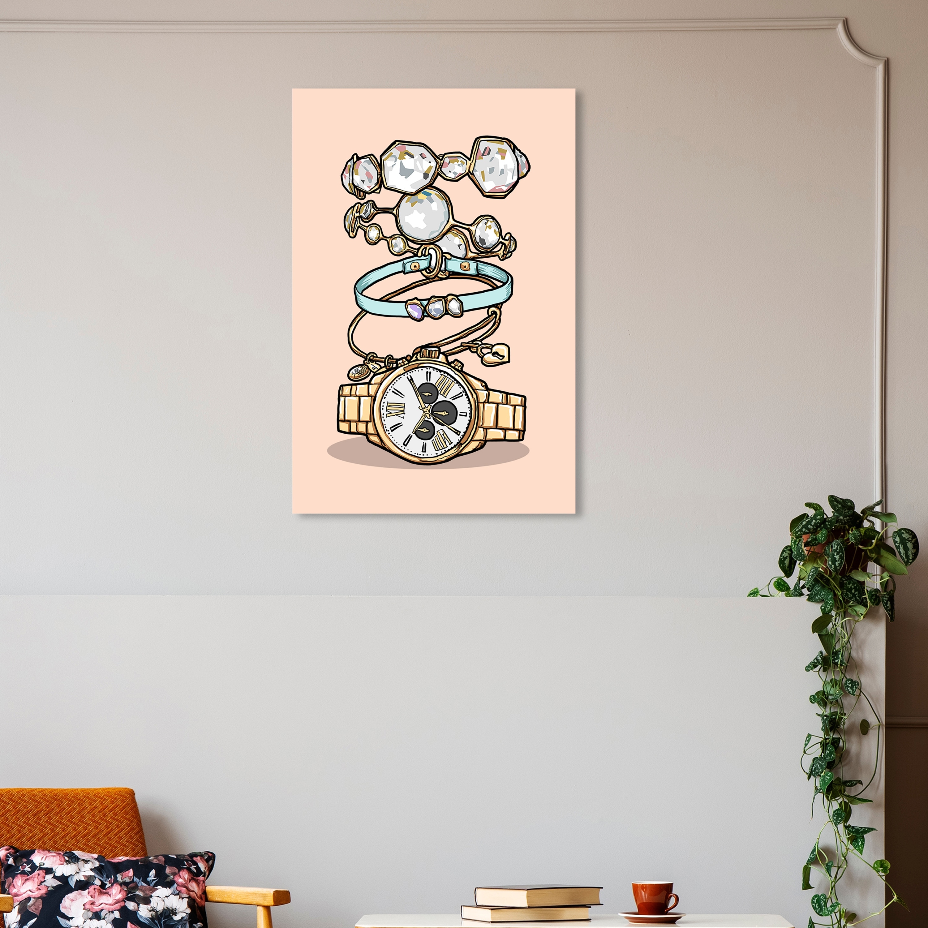 Wynwood Studio Canvas Fashion and Glam Diamond Arm Candy Peach Gold and Metallic Gold Glam Wall Art Canvas Print