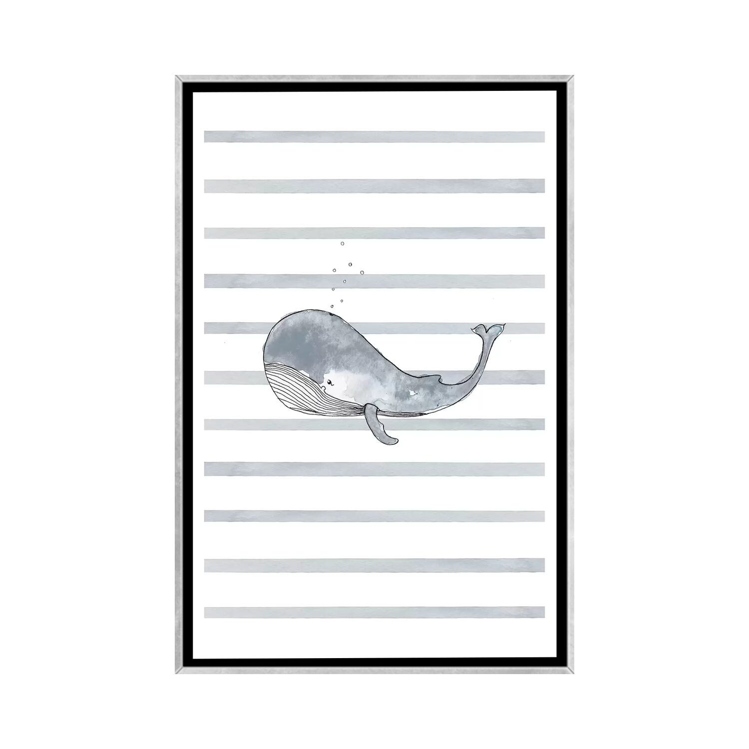 iCanvas "Whale Left Stripes I" by Leah Straatsma Framed