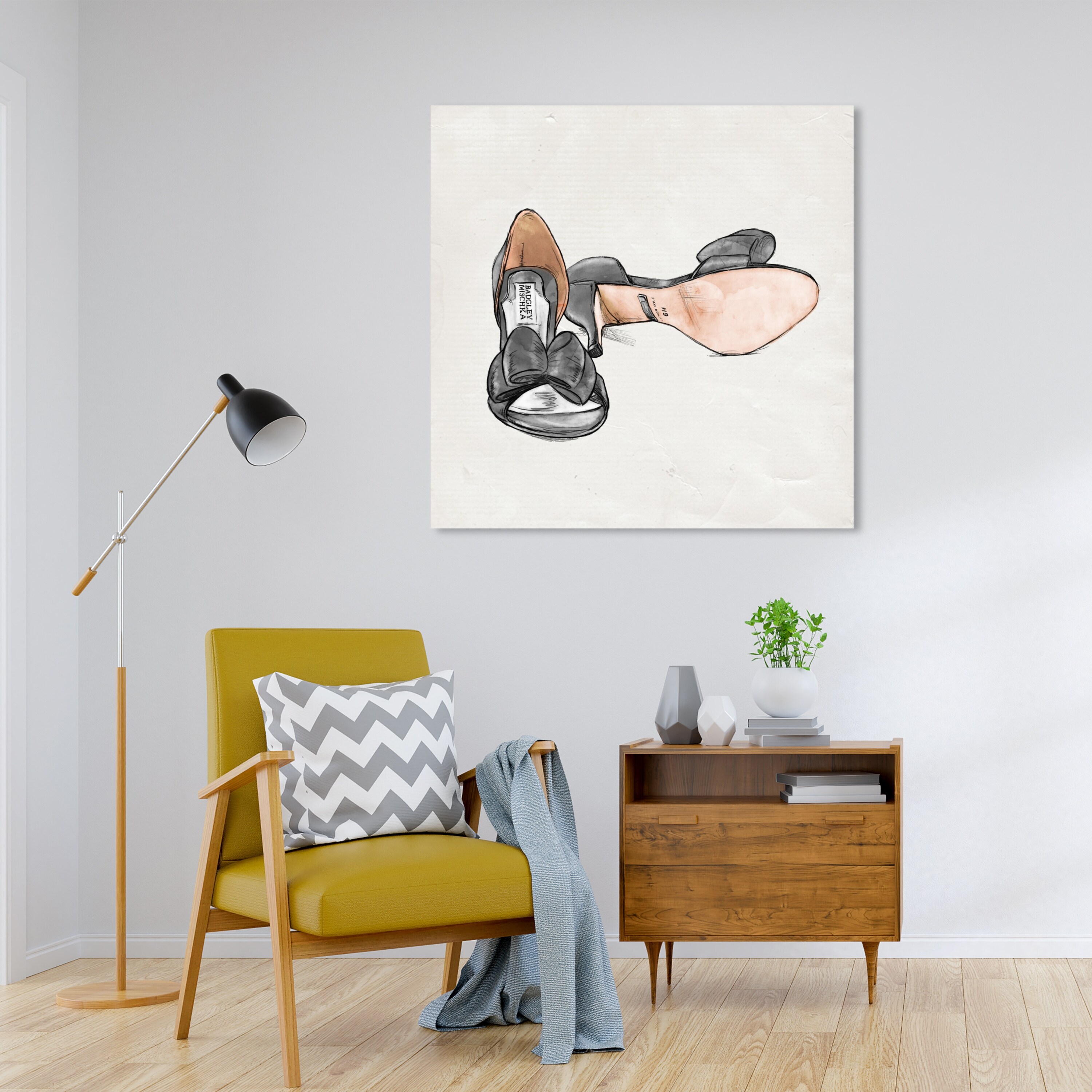 Designart "50S Art Deco Shoes" Fashion Framed Canvas Art Print