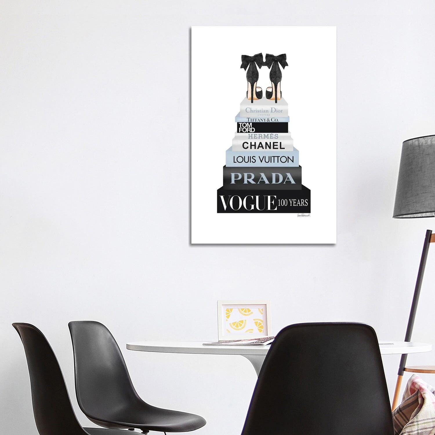 iCanvas "Tall Book Stack in Black & Pale Blue With Shoes" by Amanda Greenwood Canvas Print