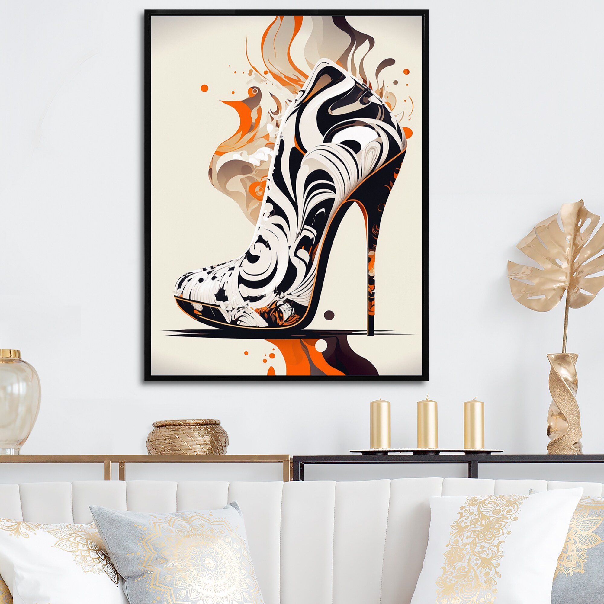 Oliver Gal 'Felines Choice' Fashion and Glam Wall Art Canvas Print Shoes - Orange, Gray