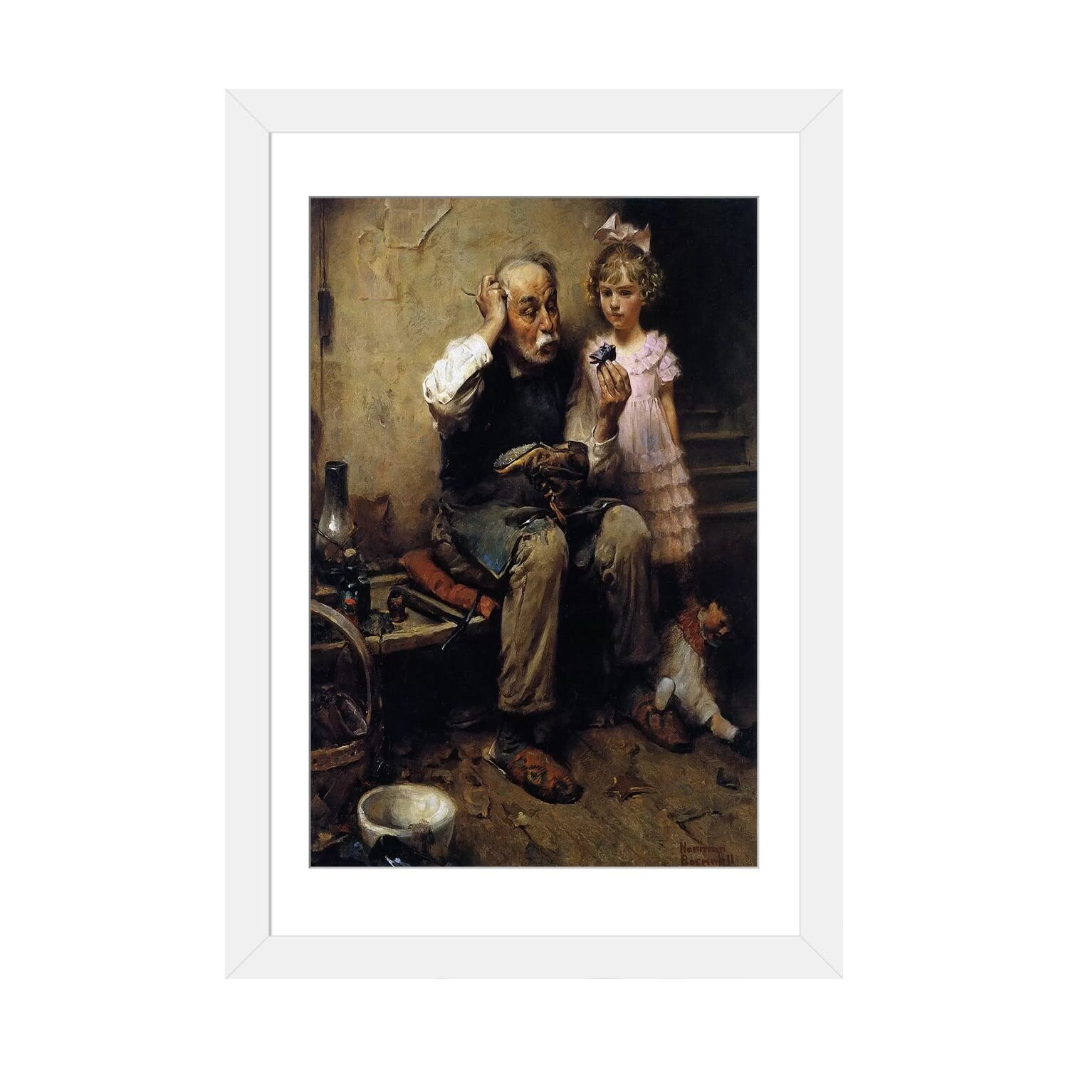 iCanvas "Cobbler Studying Doll's Shoe" by Norman Rockwell Canvas Print