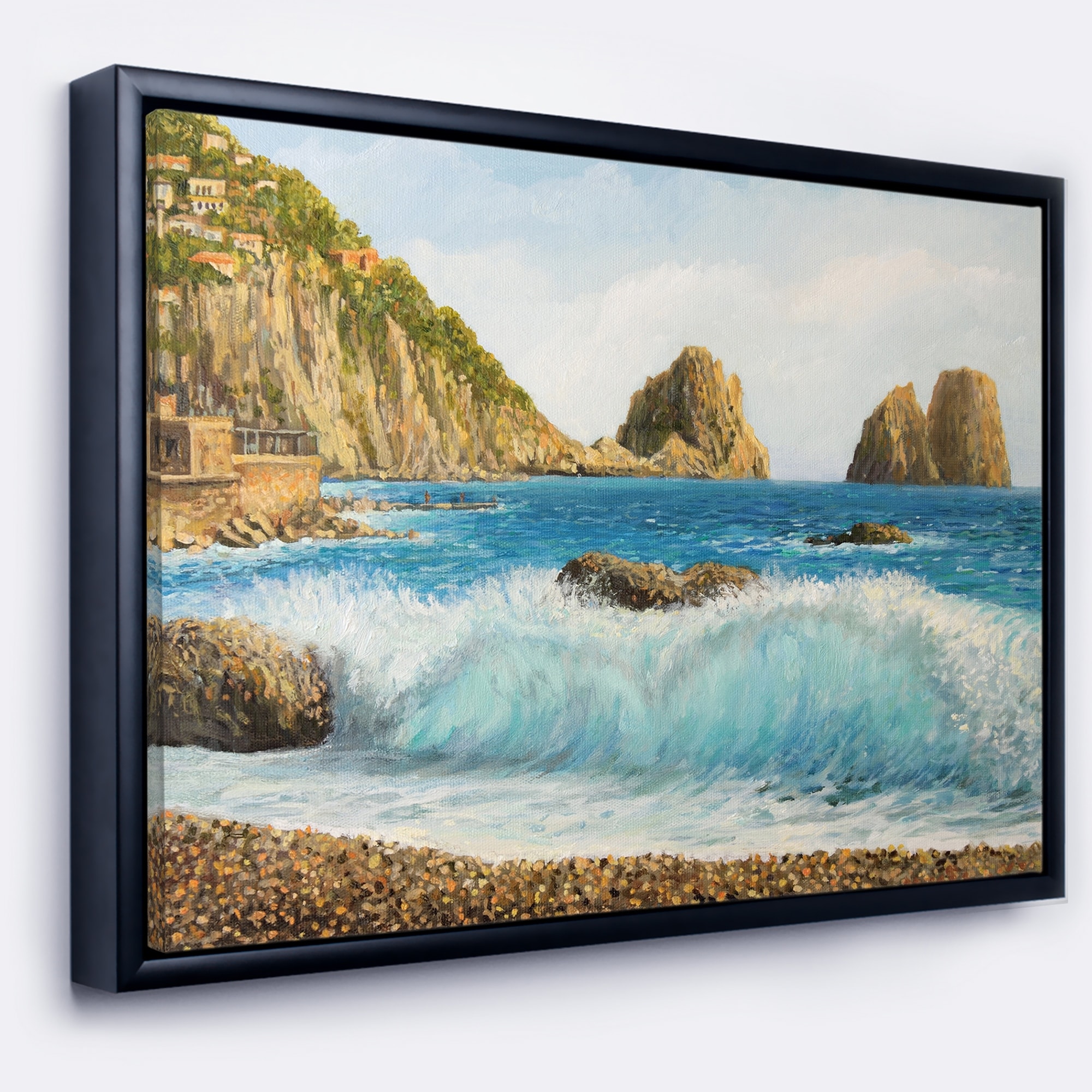 Designart "Faraglioni on Island Capri" Seascape Framed Canvas Art Print