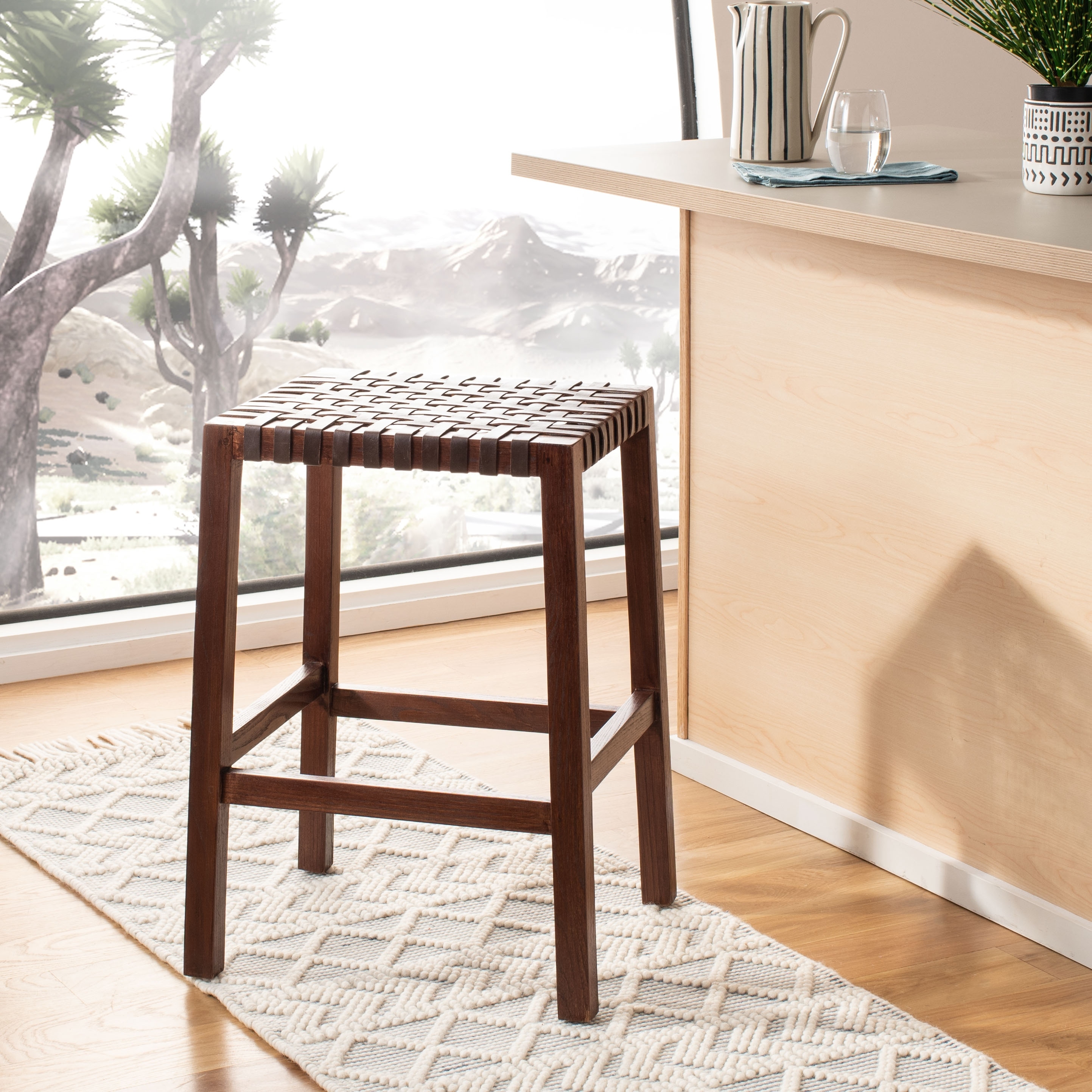 SAFAVIEH Capri Woven Lattice Counter Stool - 20" x 17.7" x 27.1"
