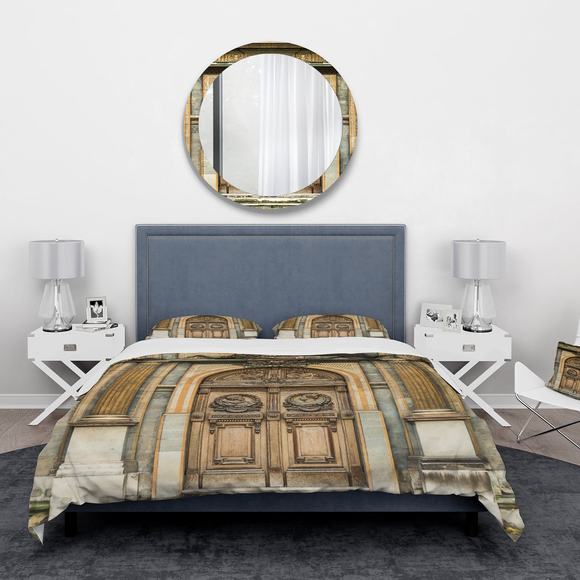 Designart 'Old Wooden Door With Carvings in Paris, France' Vintage Bedding Set - Duvet Cover & Shams
