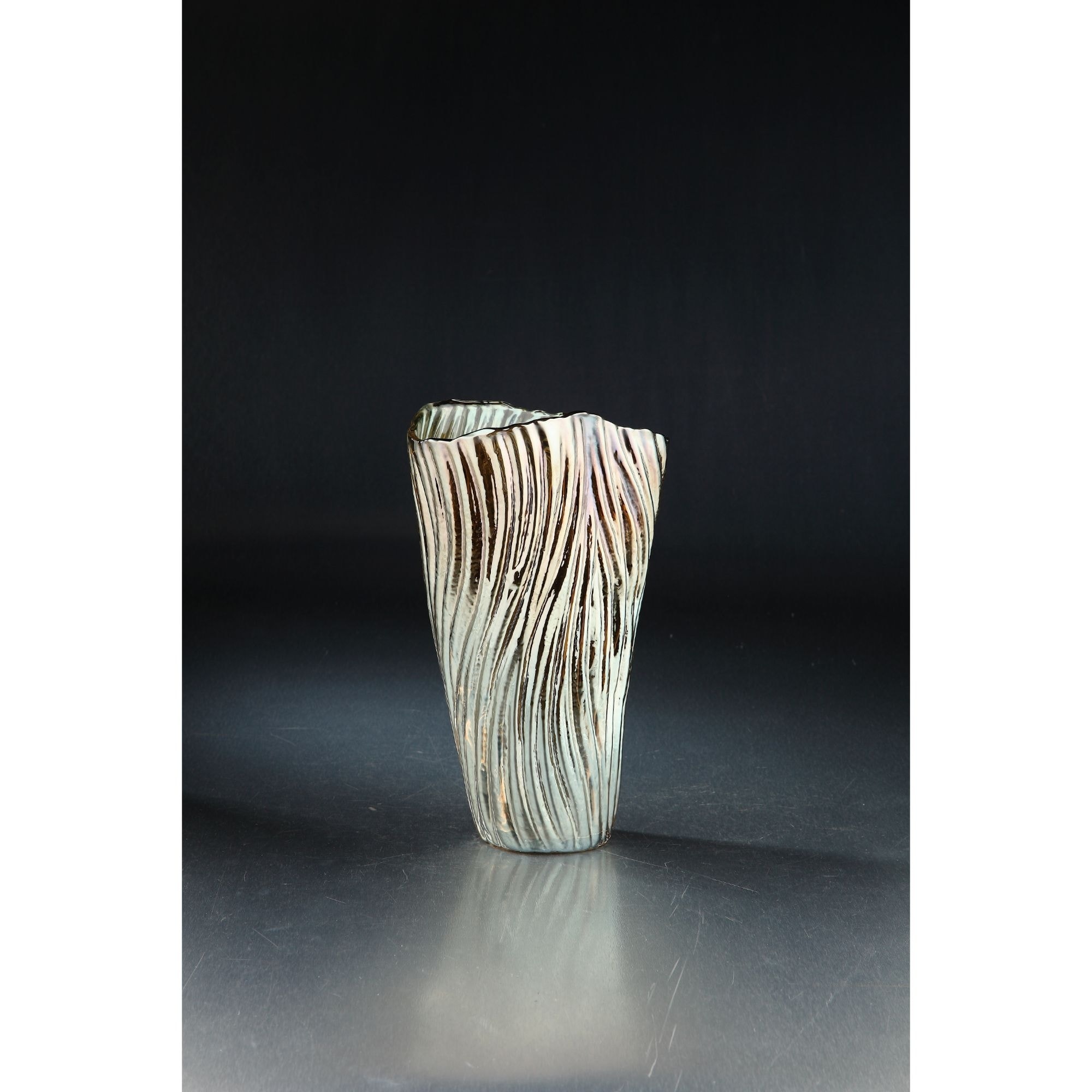 11.5" Gold Hand Carved Lined Glass Flower Vase