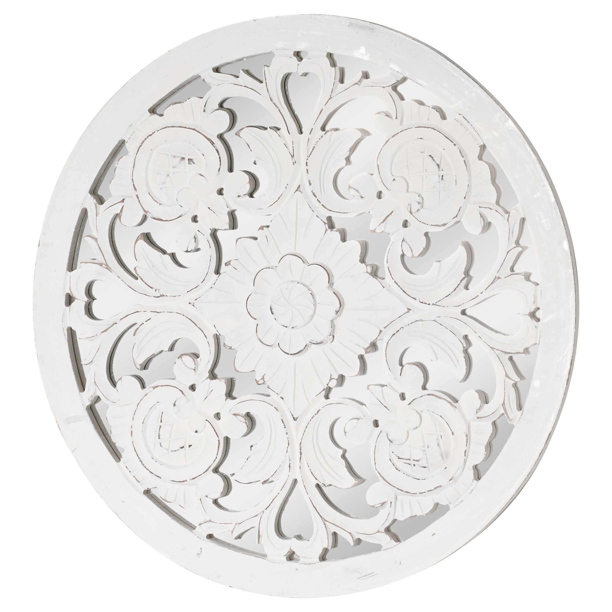 Distressed Reflective Hand-Carved White Floral Wood Wall Medallion 24"